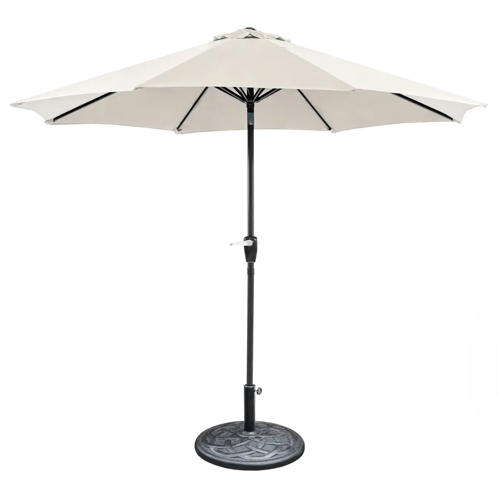 This umbrella is made to last. It has a strong aluminum pole that can handle all kinds of weather. The fabric is made for the outdoors and won't fade in the sun. With 8 steel ribs, it stays steady, even when it's windy. The crank system makes it easy to open and close. The silver rust fabric looks classy, and the black pole adds a bold touch. It's a great choice for any patio or garden.【Durable Weather-Resistant Construction】: Built with a strong aluminum pole and 8 steel ribs, this umbrella is designed to withstand various weather conditions, including wind, and is both UV and water-resistant to prevent fading and damage.【Easy-to-Use Crank Mechanism】: The convenient crank system allows for smooth and effortless opening and closing of the umbrella, enhancing user convenience.【Adjustable Tilt for Sun Control】: Featuring an adjustable tilt function, it enables you to easily angle the canopy to block the sun from different positions throughout the day.【Elegant and Sturdy Freestanding Design】: With its classic rust-resistant fabric and a bold black frame, it offers a contemporary style ideal for patios or gardens, and its freestanding mount provides flexible placement.【Elegant and Sturdy Freestanding Design】: Keep umbrella fully closed during windy conditions. Store in the provided Bag if the umbrella is not used. for prolonged periods.