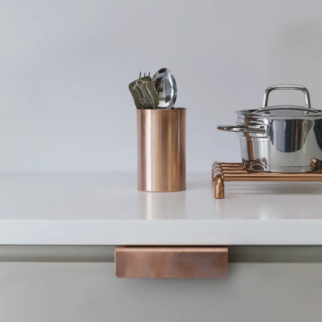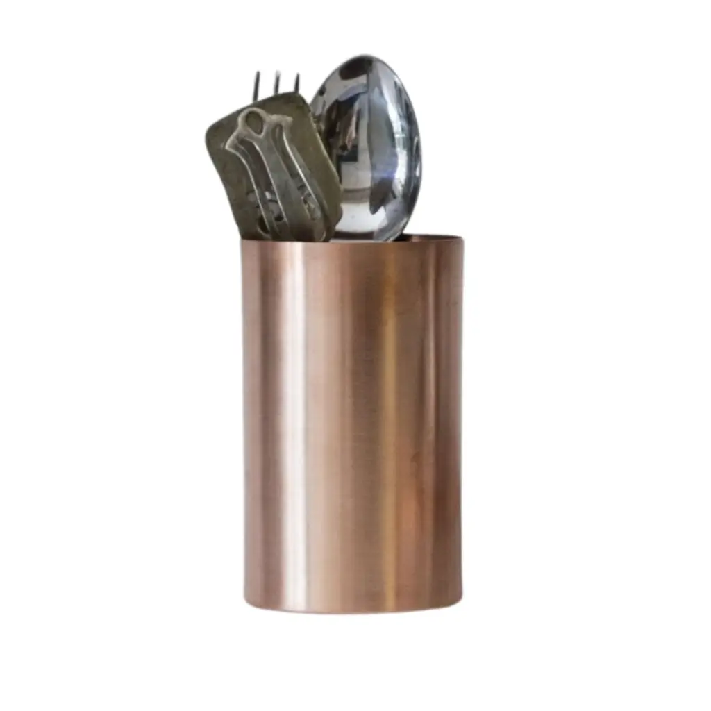 Bring a touch of rustic elegance to your kitchen with this Handcrafted Pure Copper Utensil Holder. Meticulously made from pure copper, this piece offers both functionality and timeless style. Its warm, natural copper tones and hand-finished surface make it a standout addition to any kitchen decor, whether you're aiming for a modern or vintage-inspired look. With a height of 20 cm and a diameter of 10 cm, it's perfectly sized to hold your cooking utensils, keeping them organized and within easy reach. The simple yet sophisticated design of this copper utensil holder adds a charming accent to your countertop, blending practicality with aesthetic appeal.
