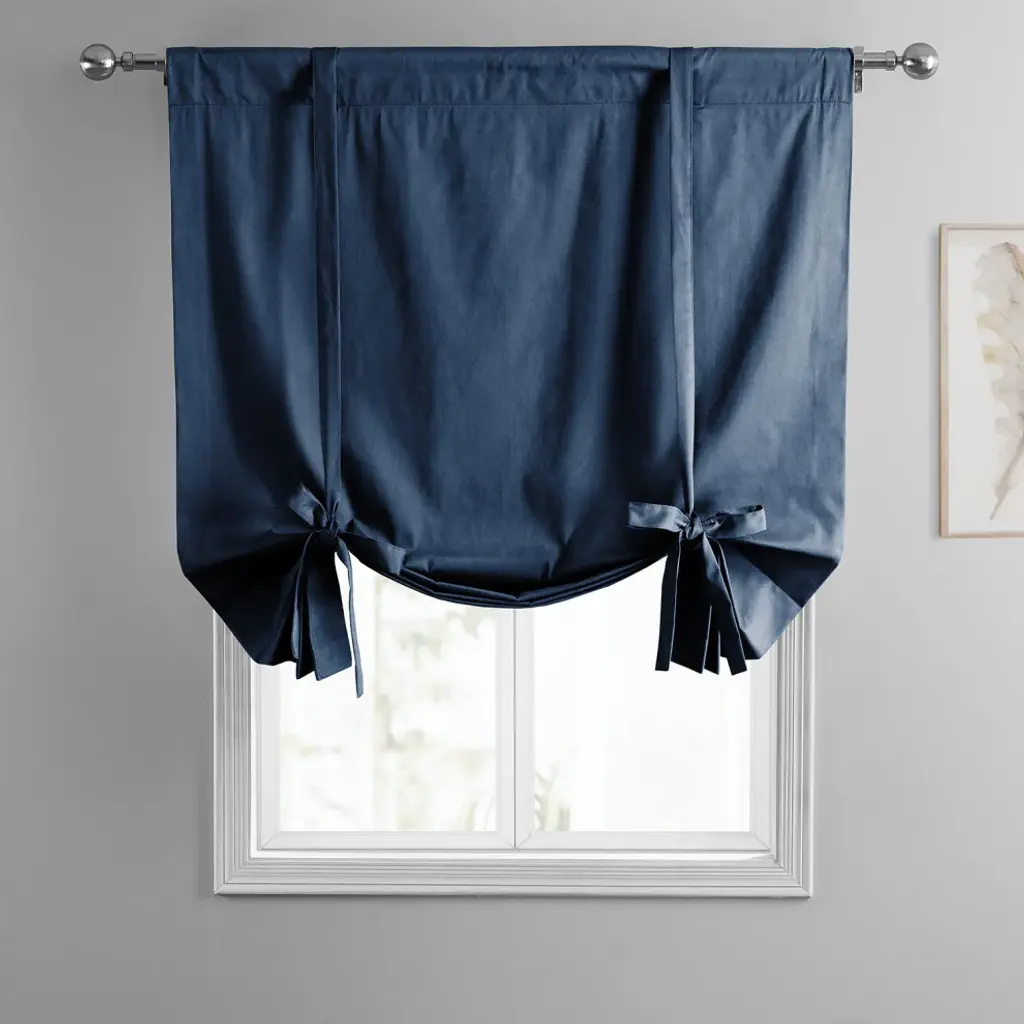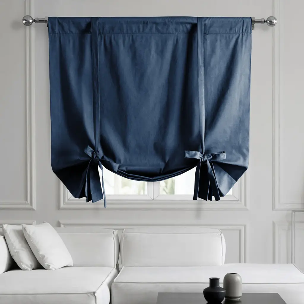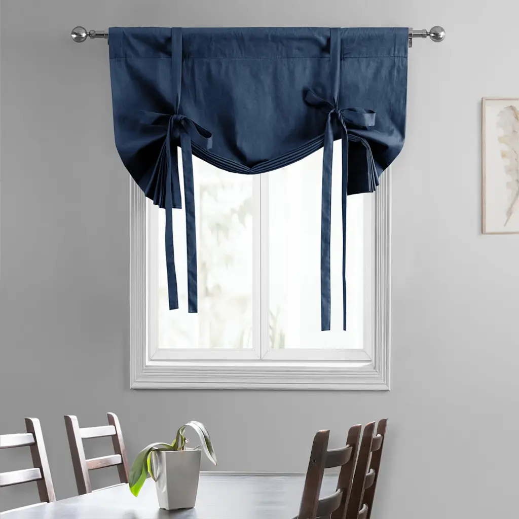 Solid Cotton Tie-Up Window Shade Single Panel, Dark Blue, 46wx63h
