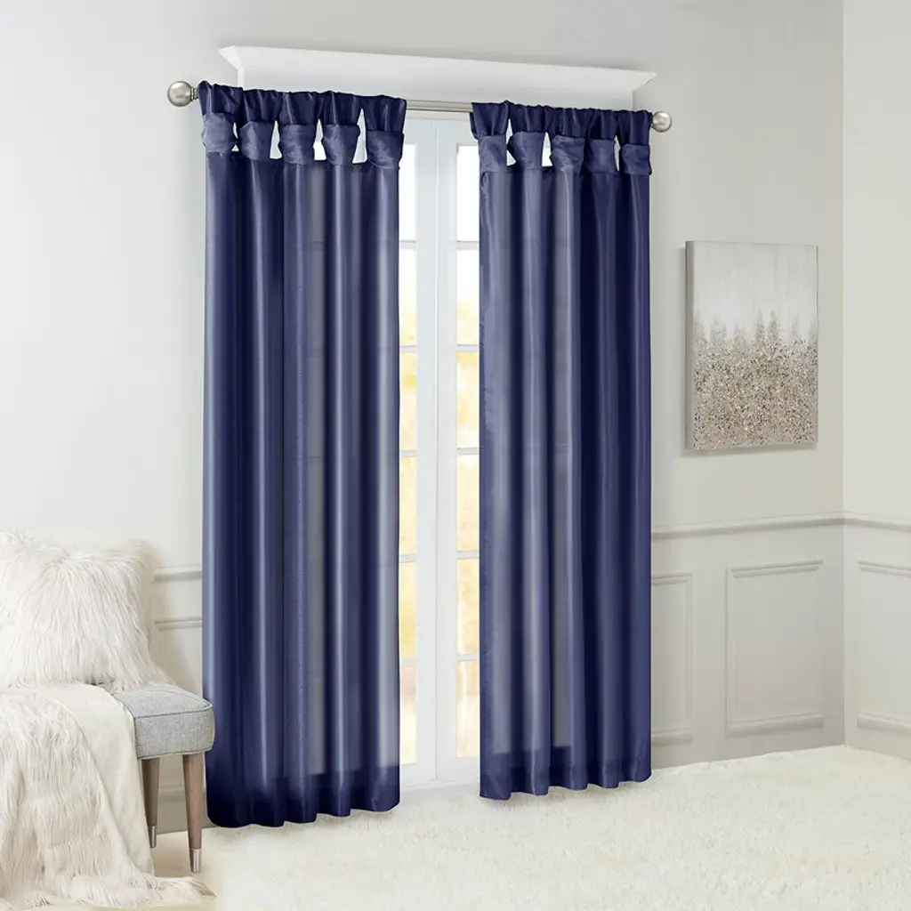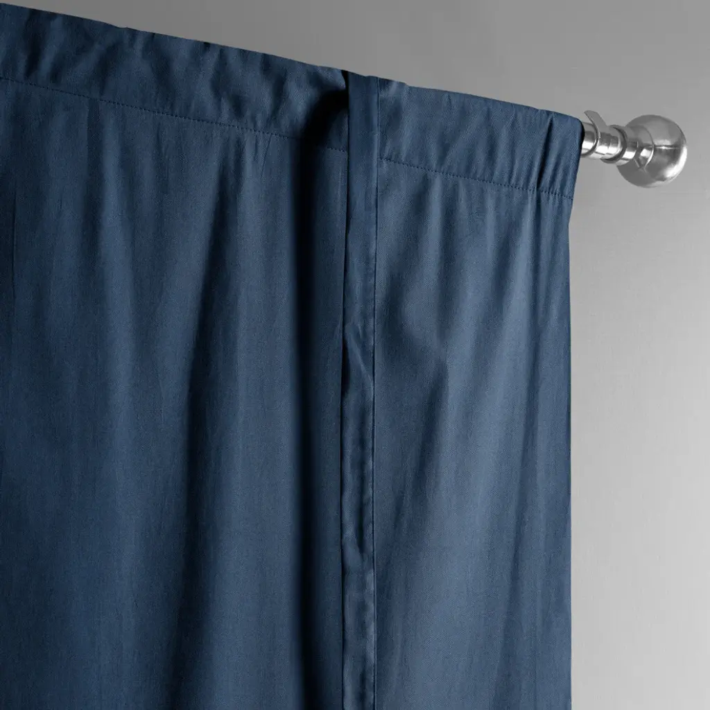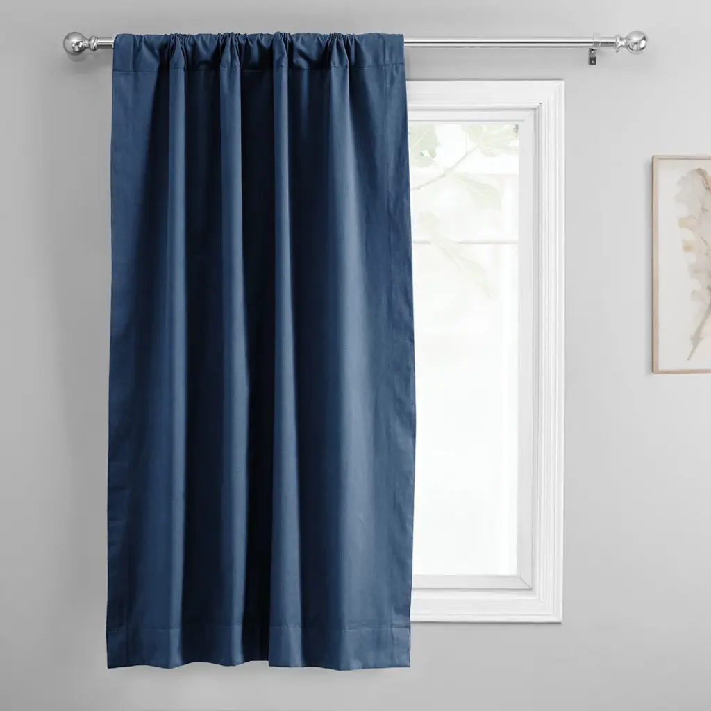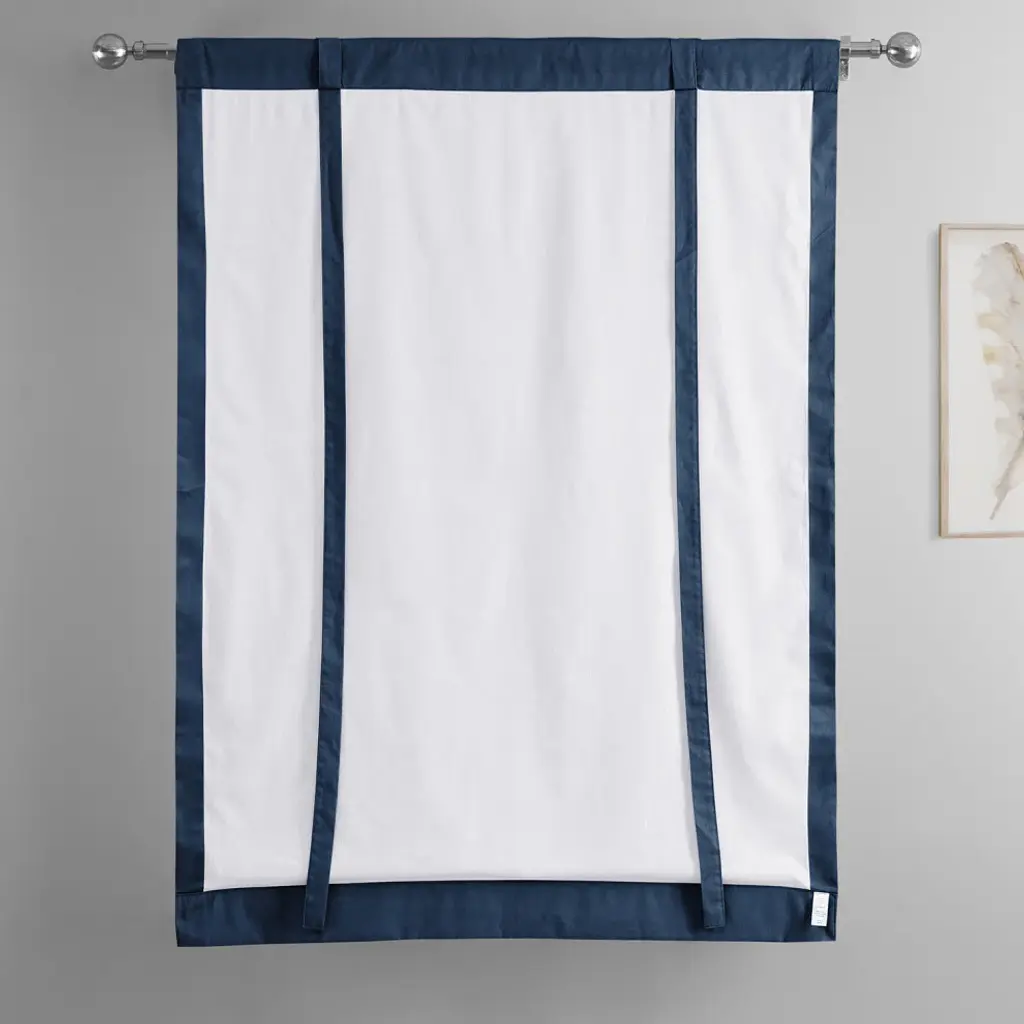 Solid Cotton Tie-Up Window Shade Single Panel, Dark Blue, 46wx63h