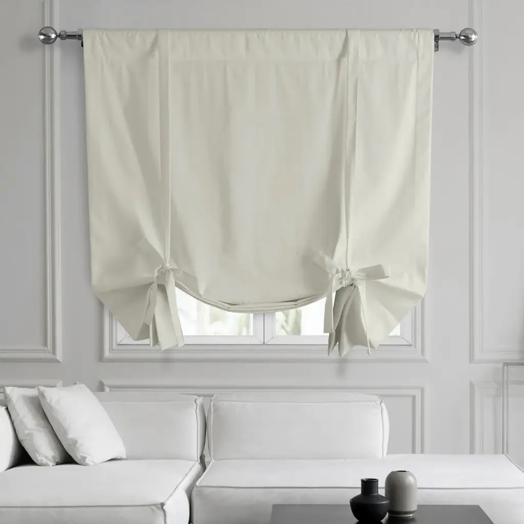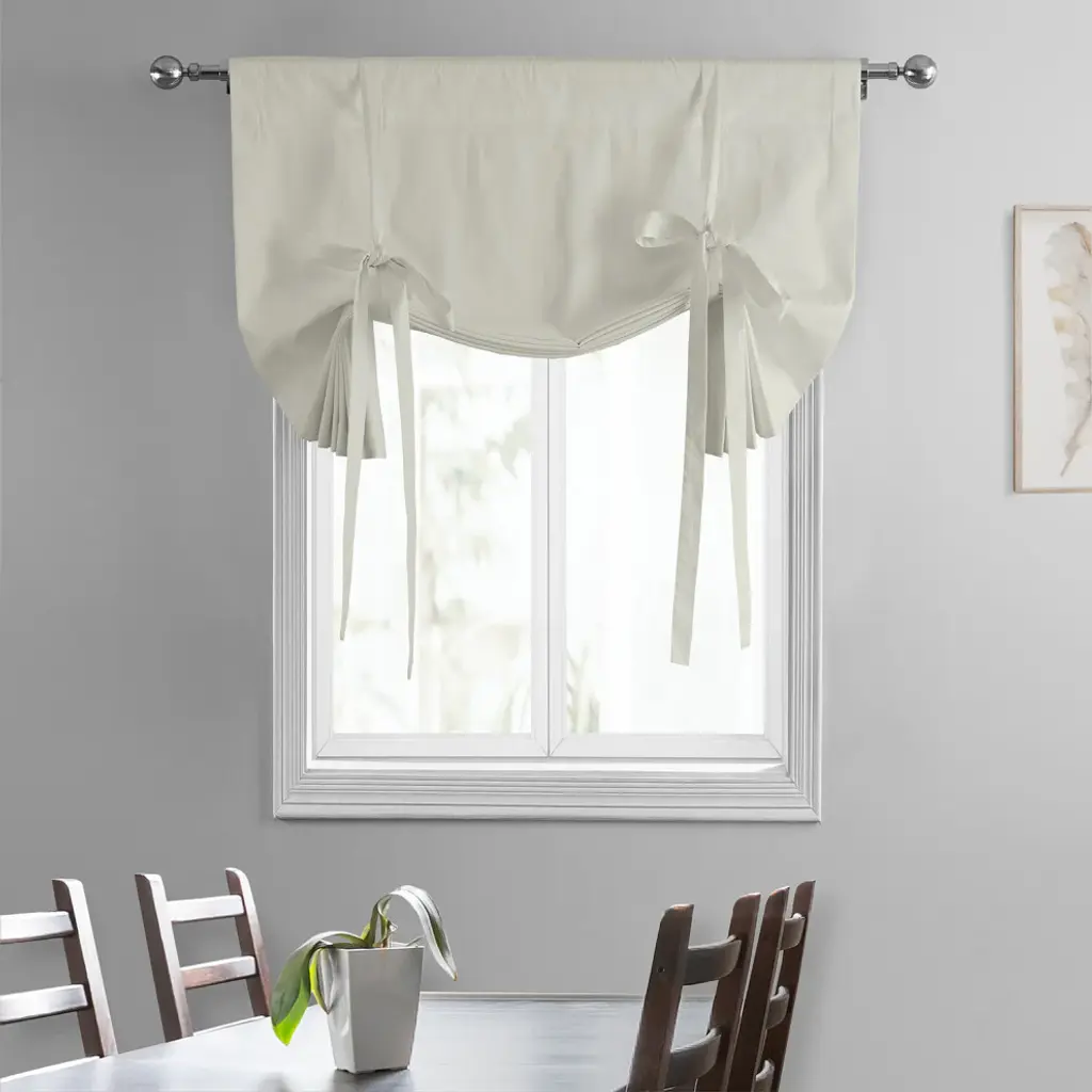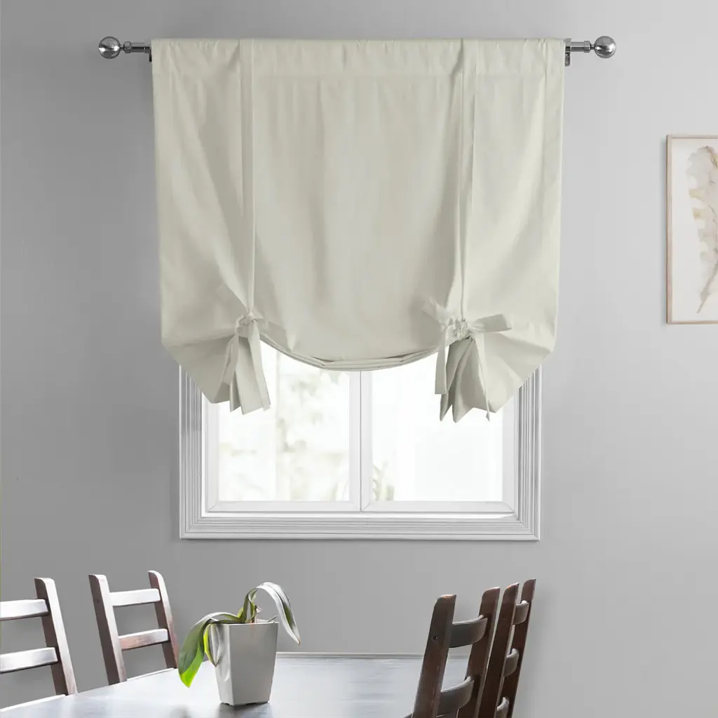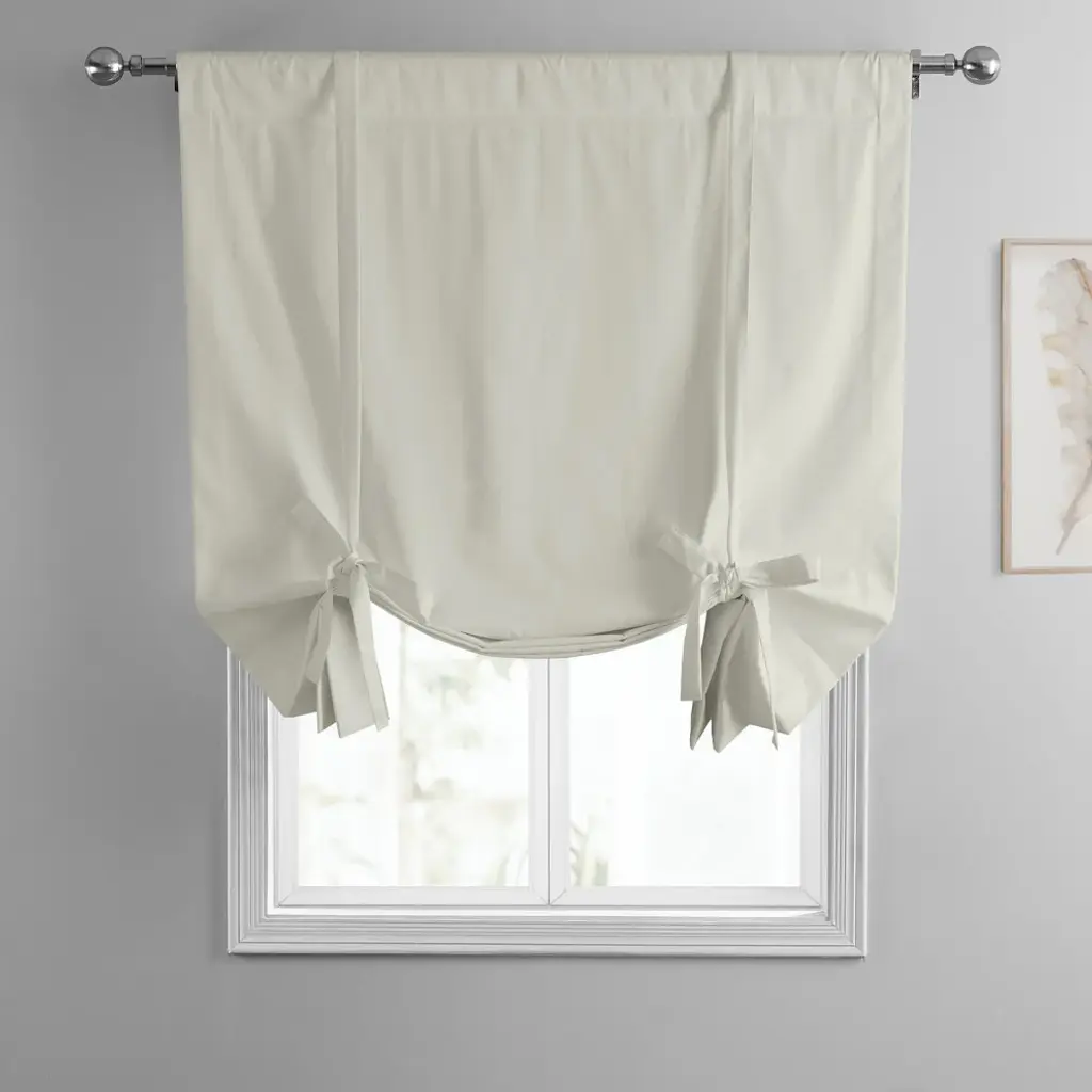 Solid Cotton Tie-Up Window Shade Single Panel, Light Greige, 46wx63h