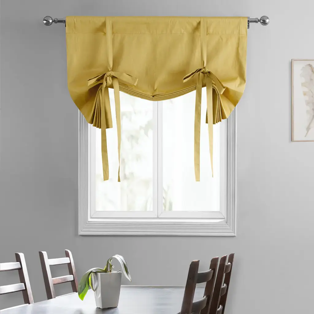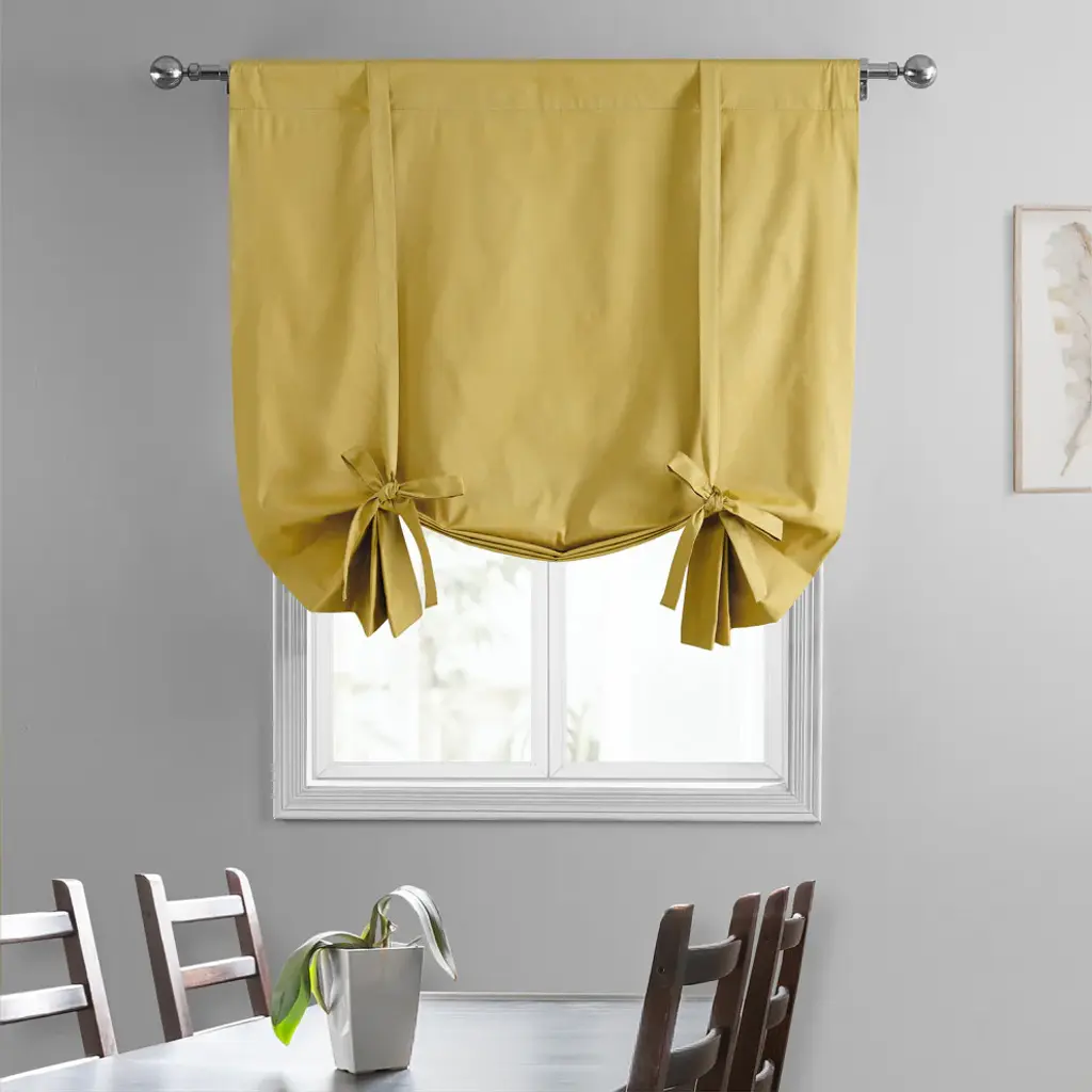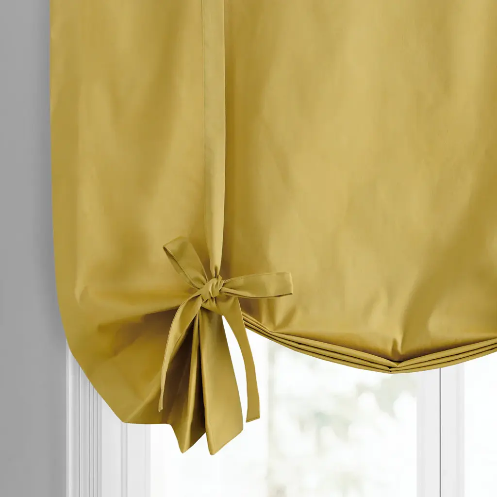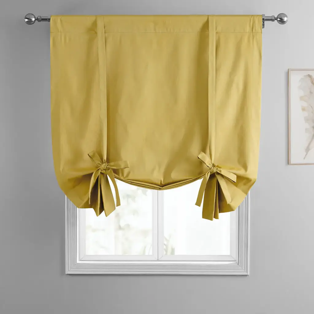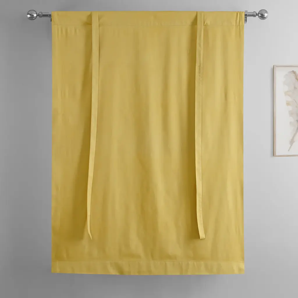 Solid Cotton Tie-Up Window Shade Single Panel, Light Ochre, 46wx63h