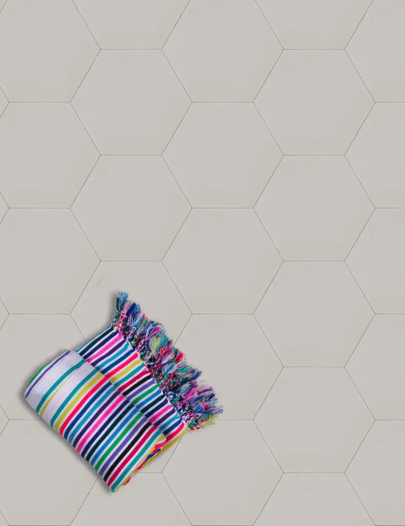Available in our full palette in both cement and ceramic tile, these solid-shade hexagonal tiles can stand alone or mix with other colors to create a multicolor surface. They can also be coordinated with our Moon Phase tiles for a calming mix of graphic and solid.Cement TilesType: Encaustic cement tileProduction process: Hydraulic pressing processMaterials: White cement, stone powder, additives, grey cement, sand/clay, and glazeQualities and maintenance: Porous — apply sealer as recommended by manufacturer on productTiles per box: 12Note: Please expect subtle variations in the color and thickness of our handmade tiles.Lead times may vary and delays are possible due to circumstances beyond our control. We are not responsible for delayed installation, lost work time, or altered construction timelines in the event of a delay. All tile orders are final — no returns or exchanges will be accepted. Shorter lead times depend on stock availability.Samples are only for reference to color and scale, and although they are carefully packed, samples may be inadvertently damaged during shipment or may contain fragments of chipped tile or clear breaks in the sample. We add 20% overage to all tile orders to account for this.