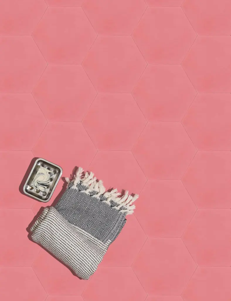 Available in our full palette in both cement and ceramic tile, these solid-shade hexagonal tiles can stand alone or mix with other colors to create a multi-color surface. They can also be coordinated with our moon phase tiles for a calming mix of graphic and solid.Cement tilesType: Encaustic cement tileProduction process: Hydraulic pressing processMaterials: White cement, stone powder, additives, grey cement, sand or clay, and glazeQualities and maintenance: Porous, apply sealer as recommended by manufacturer on productTiles per box: 12Note: Please expect subtle variations in the color and thickness of our handmade tiles.Lead times may vary and delays are possible due to circumstances beyond our control. We are not responsible for delayed installation, lost work time, or altered construction timelines in the event of a delay. All tile orders are final. Shorter lead times depend on stock availability.Samples are only for reference to color and scale, and although they are carefully packed, samples may be inadvertently damaged during shipment or may contain fragments of chipped tile or clear breaks in the sample. We add 20% overage to all tile orders to account for this.