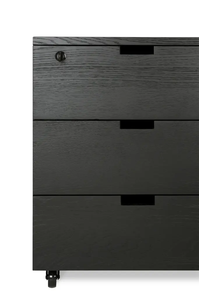 your work space with the Billy drawer unit in solid oak. It features three soft-closing drawers and easy access thanks to the handy wheels. On its own or under a desk, it is the simple staple every office needs.