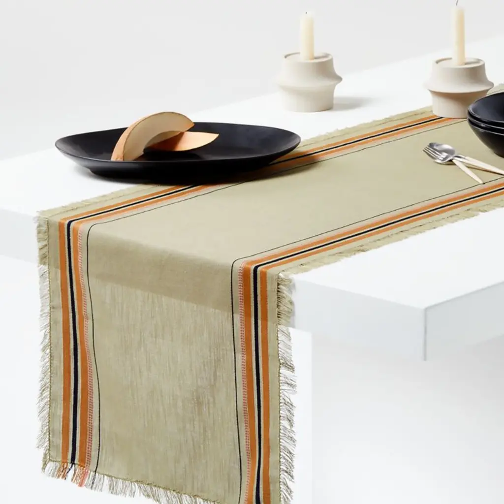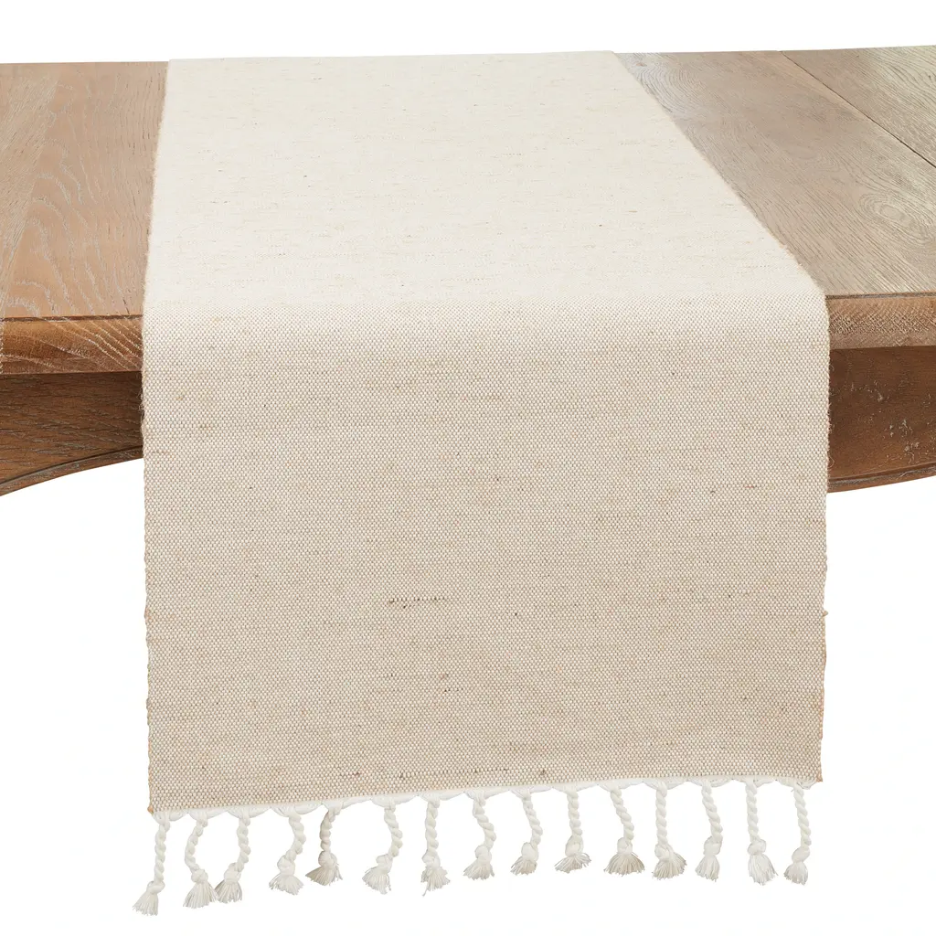 Classic good looks with modern, clean style - that's what you get with this tassel trimmed table runner. Made from a jute-cotton blend, you can't help but notice the fabric and the tassels themselves because they draw you in. It's the perfect item to spruce up your table.Features: