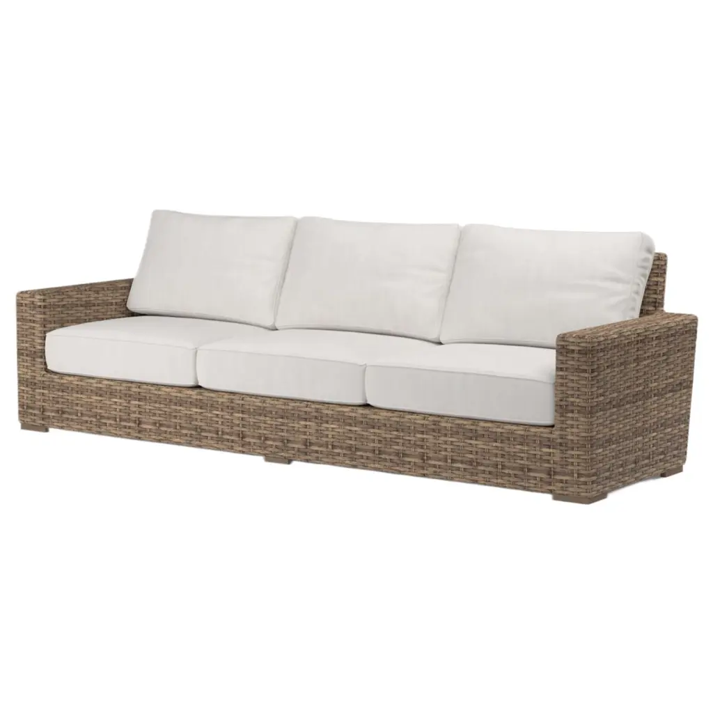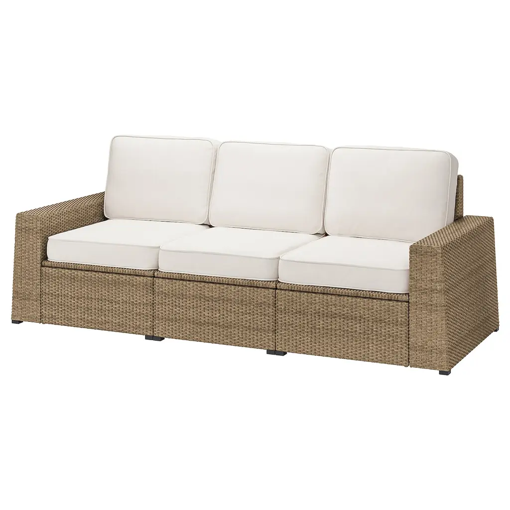 SOLLERÖN 3-seat modular sofa, outdoor - brown/Järpön/Duvholmen white 87 3/4x32 1/4x35 3/8 ". By combining different seating sections, you can create a sofa in a shape and size that perfectly suits your outdoor space. Practical storage space under the seat. Hardware to connect sections included.