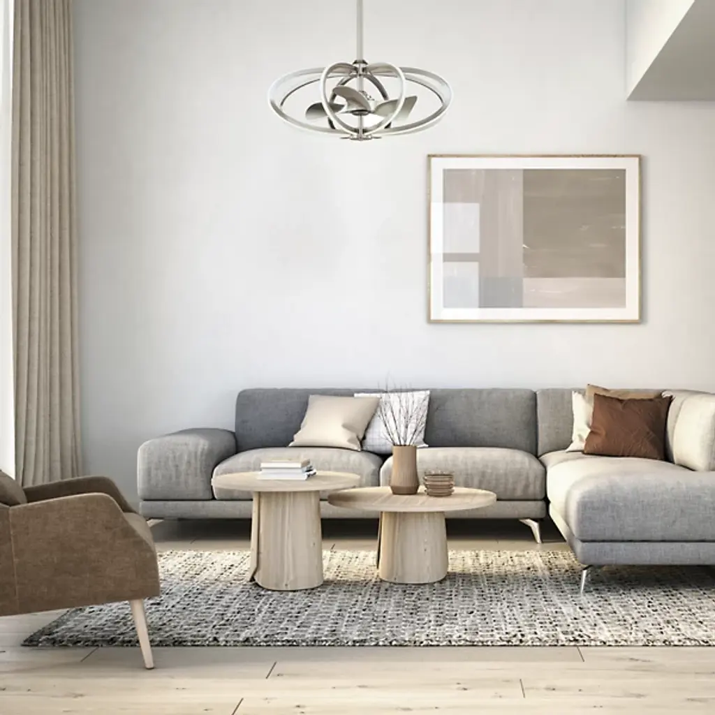 The Solstice Smart LED Fandelier from Maxim Lighting combines contemporary functionality with artistic design. Featuring a Wi-Fi-enabled fan encased in a cage of gracefully bent channels with integrated LED lamping beneath translucent diffusers. The smart controls allow you to adjust fan speed, light intensity, and color temperature via the included remote or compatible smart home apps—no gateway required. With its sleek profile and versatile features, this fandelier is a stunning and efficient addition to modern interiors.