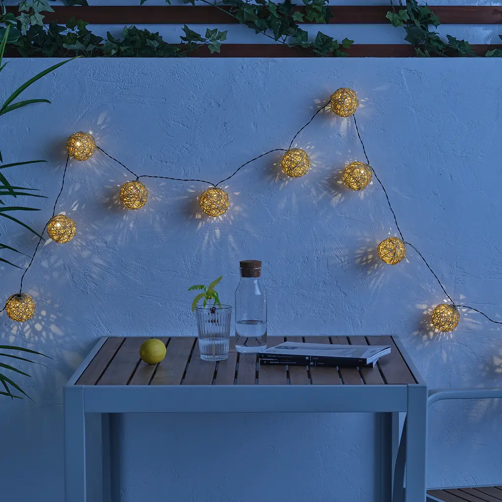 SOLVINDEN LED string light with 12 lights - battery operated/beige. Easy to place anywhere as it is battery operated and does not need to be connected to the main supply. Suitable for both indoor and outdoor use. Approved for use as outdoor lighting, IP 44. Built-in LED light source. On-off switch.