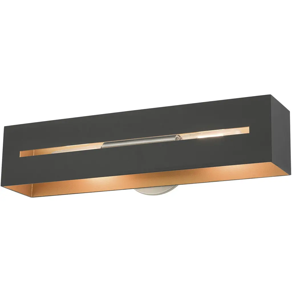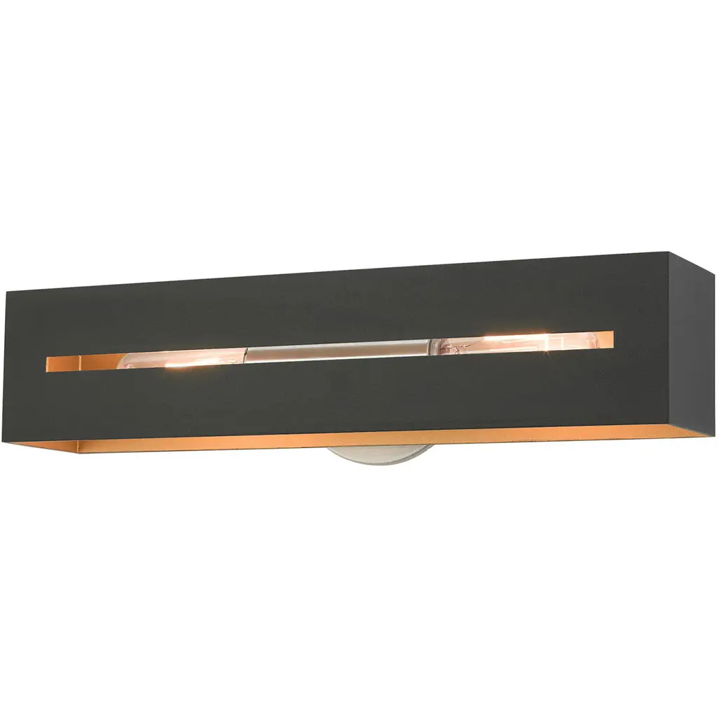 2 Lt Textured Black with Brushed Nickel Accents ADA Vanity Sconce