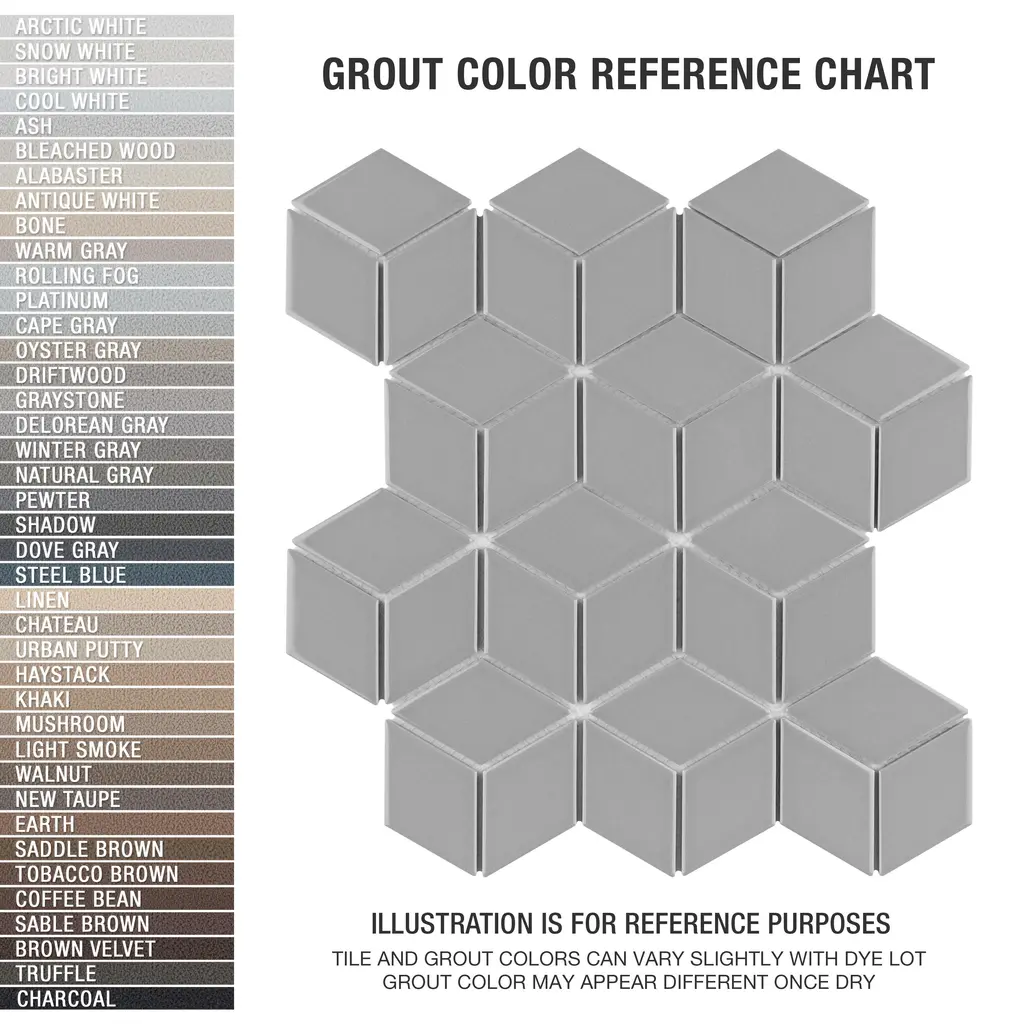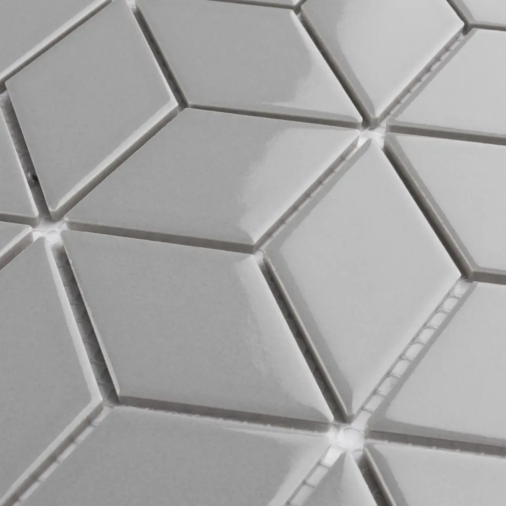 Our Metro Rhombus Glossy Light Grey Porcelain Mosaic Floor and Wall Tile instantly elevates spaces through a refreshing dose of geometric design. As an innovative twist on the classic mosaic, this product is comprised of diamond shaped chips in light grey with a smooth surface. Glossy diamonds are arranged on an interlocking mesh to create a seamless installation. This minimalistic geometric porcelain mosaic is unique yet simplistic enough to integrate into any design, ranging from traditional style renovations to modern home projects. Its impervious and frost-resistant features make this an ideal tile for both indoor and outdoor residential use, including backsplashes, bathrooms, showers and kitchens. This tile is a perfect choice on its own or paired with other products in the Metro Rhombus Collection. Tile is the better choice for your space. This tile is made from natural ingredients, making it a healthy choice as it is free from allergens, VOCs, formaldehyde and PVC. 9.0 square feet, 10 pieces per case. Case weight is 22 lbs. Grade 1, first-quality porcelain tile for floor and wall use 10.5 in. width x 12.13 in. length x 0.25 in. thick mesh-mounted mosaic Glazed, smooth finish with a high sheen and uniform appearance in tone PEI Rating III is suitable for medium-duty residential floors including kitchens, halls, corridors, balconies, terraces and areas used more often with normal footwear and small amounts of dirt Impervious tiles have a water absorption of less than 0.5% for indoor and outdoor use and are frost resistant This tile has a COF wet rating less than or equal to 0.50 and is considered to have a marginally low skid resistance. This tile is not ADA approved for slip resistance. Completely frost resistant for indoor or outdoor applications; use a latex-modified thinset for acceptable bond strength Please note: Samples are not returnable