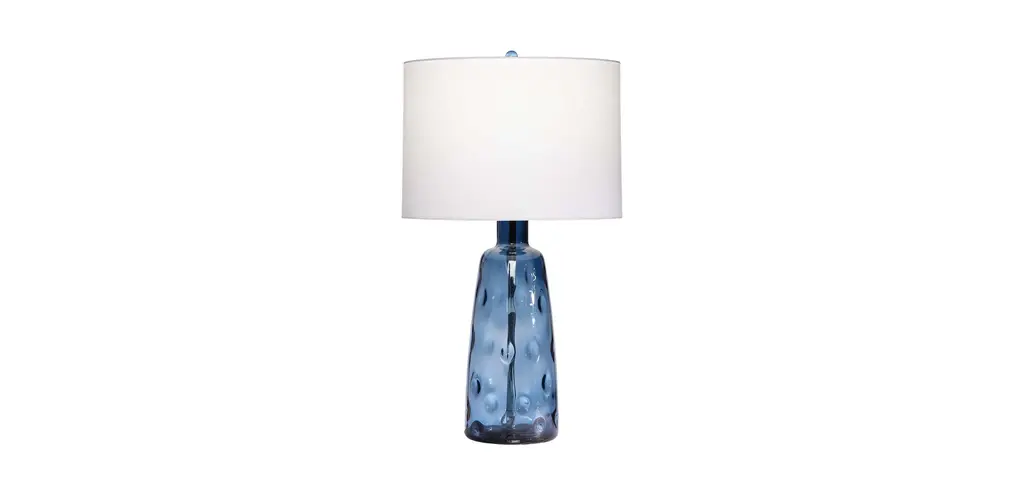 The Somov Table Lamp's slender oblong glass body with vaporous floating hues is handmade and artisan mouth blown. This lamp is full of character and color creates an elegant choice in a romantic setting.