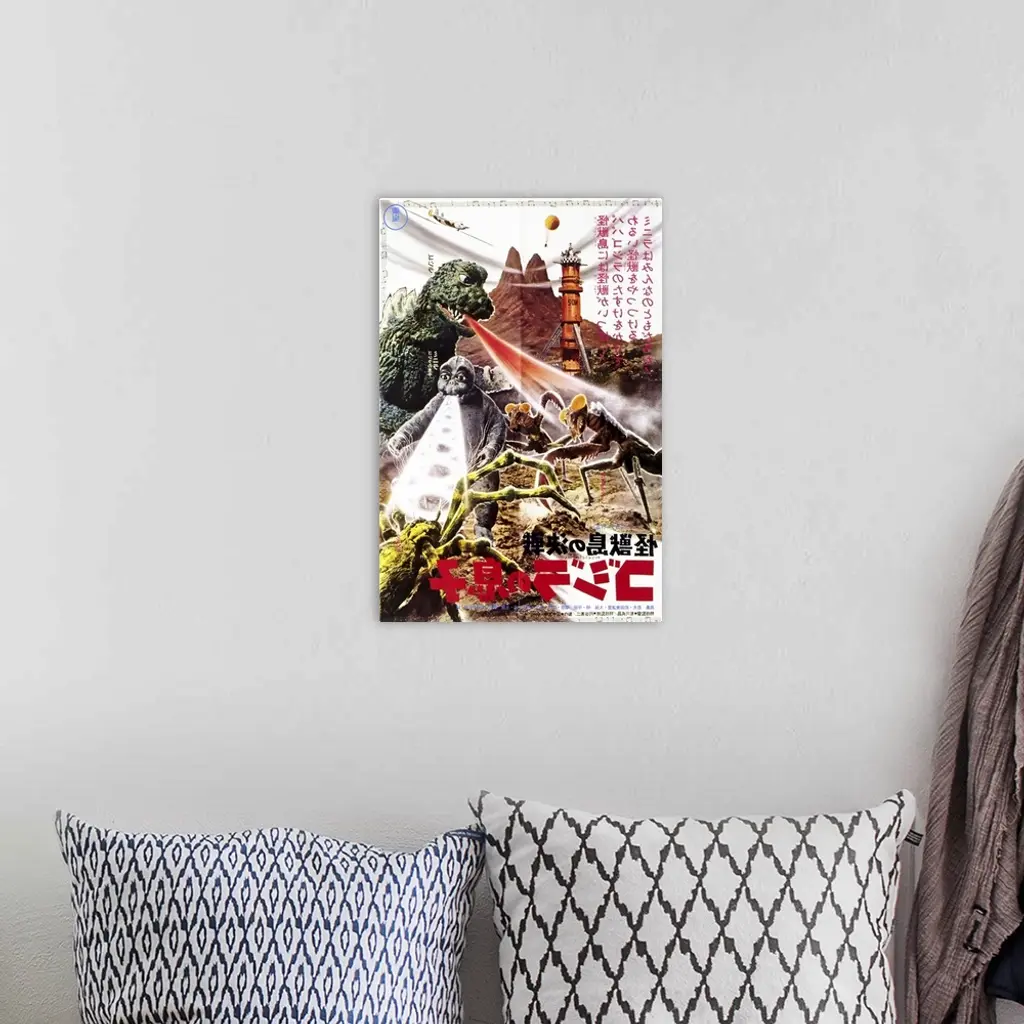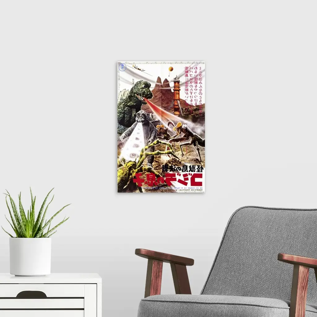 On a tropical island, scientists are conducting weather experiments and encounter gigantic mantises and a giant spider that are attacking the son of Godzilla, who arrives to defend his offspring.