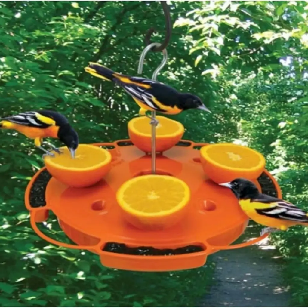Finally an Oriole feeder with enough nectar, orange halves and jelly capacity to attract and hold Orioles in your yard! When Orioles arrive, they are starving and quickly consume what's on other feeders. When the feeders are empty, they move elsewhere looking for more to eat. This won't happen to you with the new Songbird Essentials Ultimate Oriole Feeder. Feed nectar, jelly and oranges all at the same time. Built in ant moat keeps ants out of the Oriole's treats. Holds 4 halves of real oranges in such a way that ant moat can still be filled with water and be effective. Holds 1 quart of nectar which is twice as much as other flat top nectar feeders. Holds 4 times the jelly as other nectar and jelly combo feeders. Easy to fill and clean.