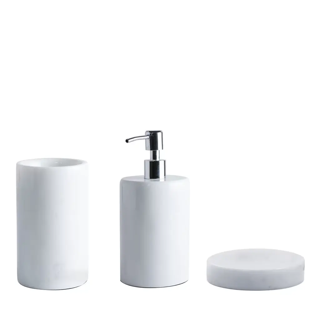 Sono bathroom accessory set is a part of the Blomus Sono bath line which features gentle shapes, perfectly rounded edges, and a soft surface with an exquisite silk matte finish. The Sono range includes a variety of practical bath items in a variety of colors. The silky smooth surface is easy to clean. Sono items are made of ceramic, composite, and silicone. The Sono bathroom collection is exceedingly functional, but at the same time reflects the brand's aesthetic vision creating a calming and harmonious setting for the everyday bath routine.