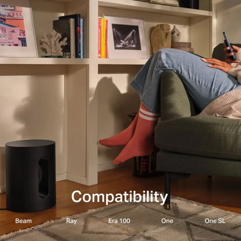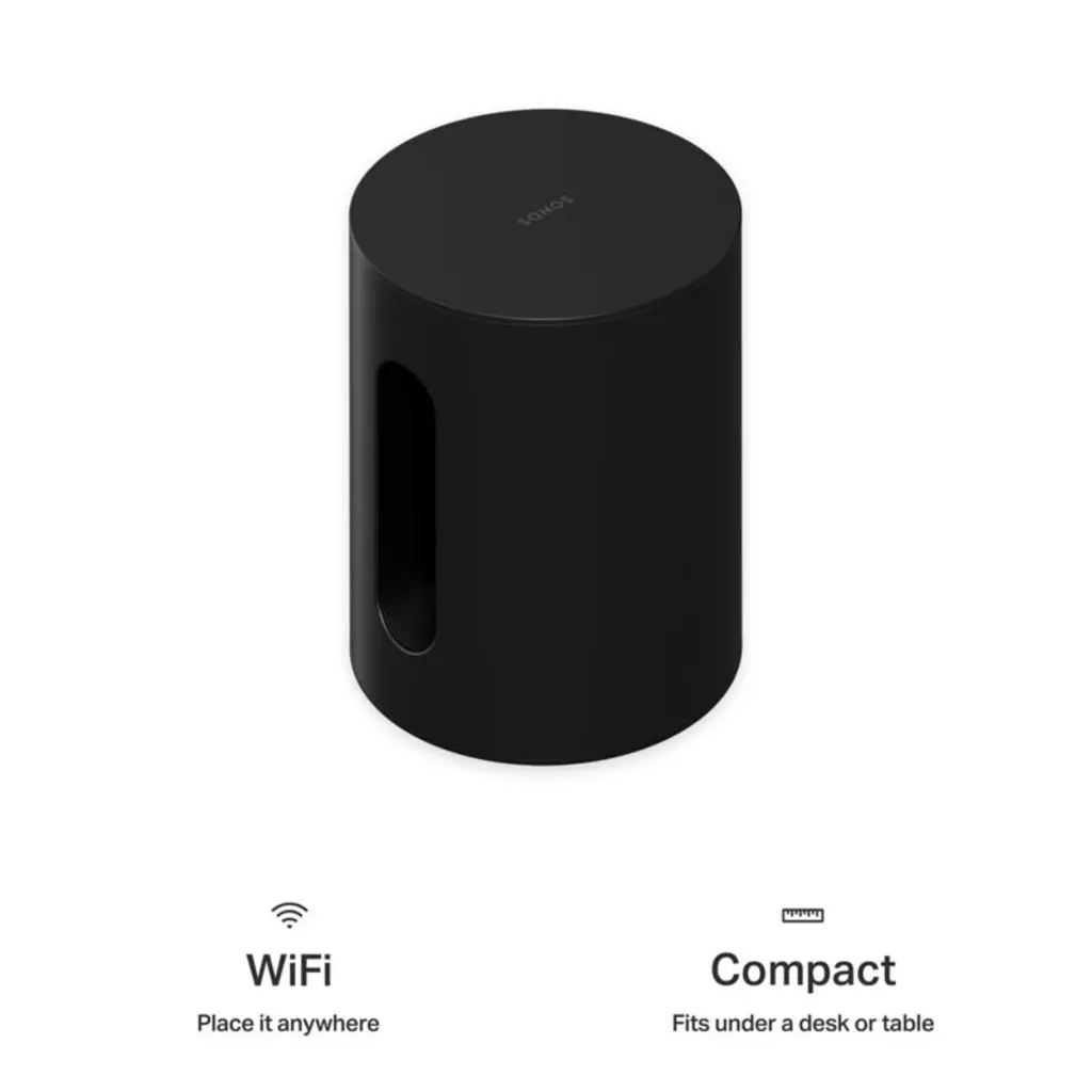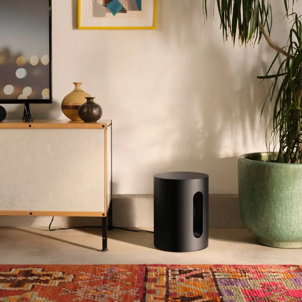 Deepen your listening experience with bold bass when you pair Sub Mini with Beam or Era 100 (sold separately). The Sub Mini enhances TV, movies and music with a richer, more immersive and balanced low-end audio. The sleek black design houses dual woofers that face inward to neutralize distortion, so you can enjoy more immersive sound without any buzz.
