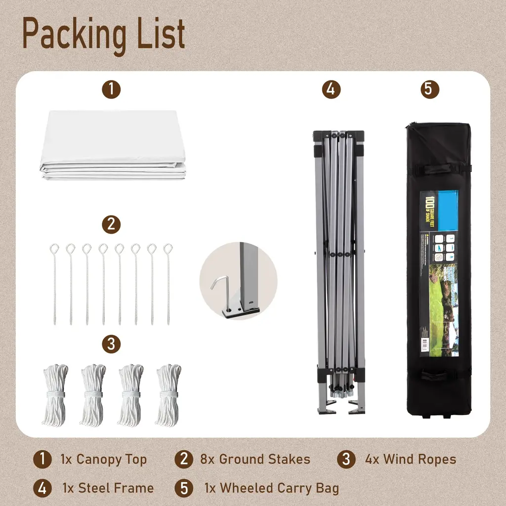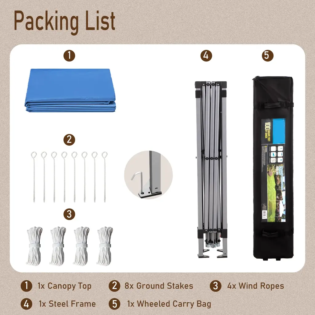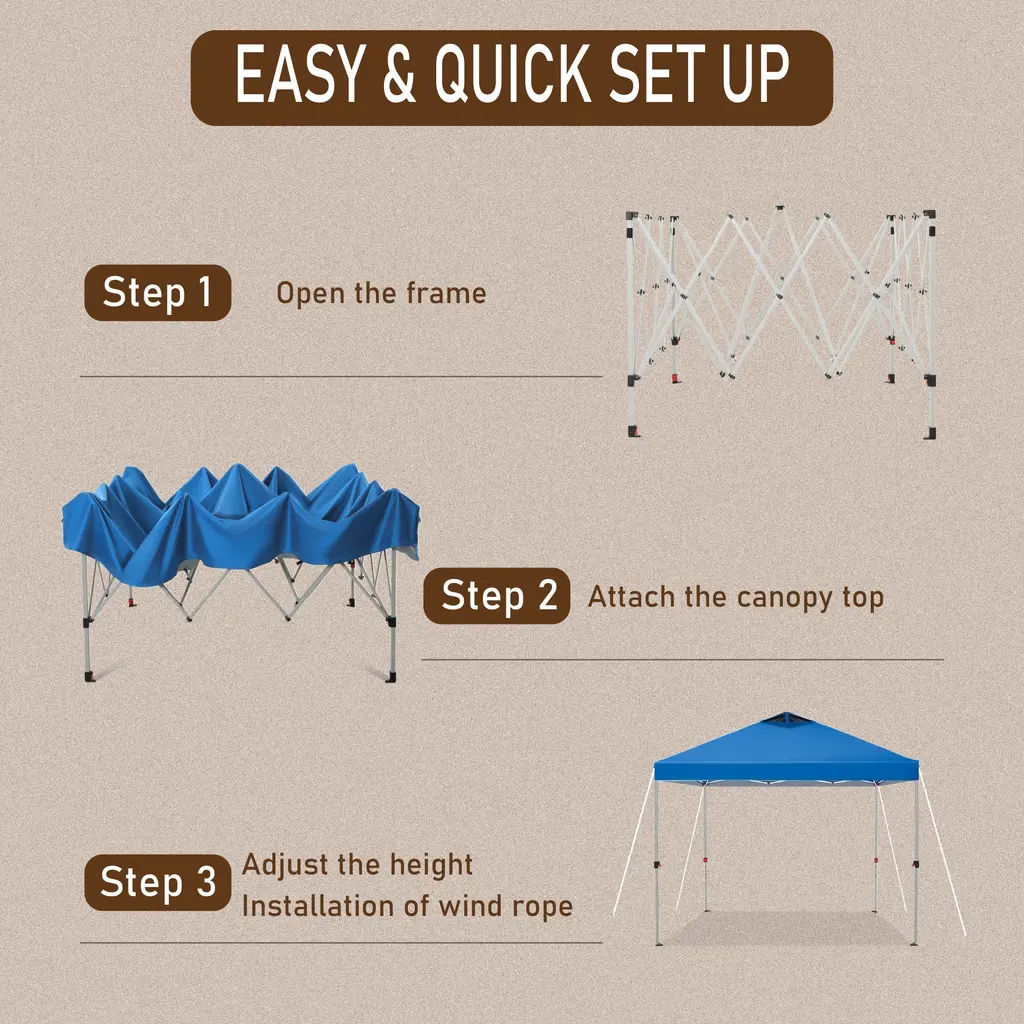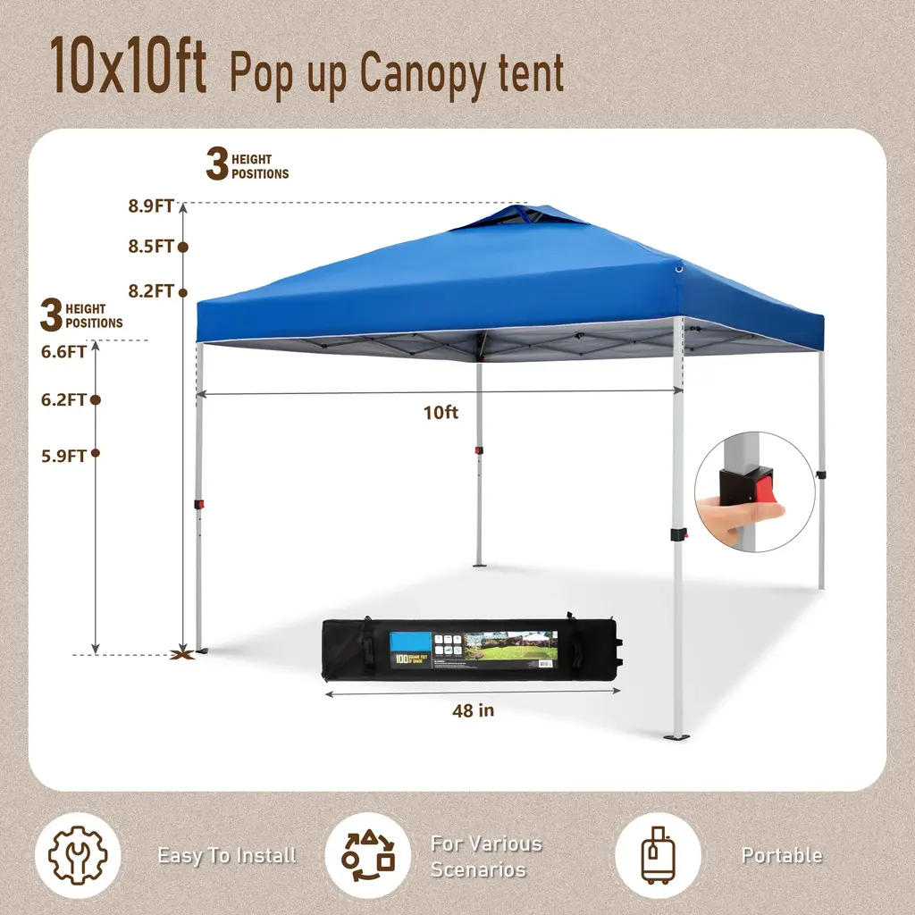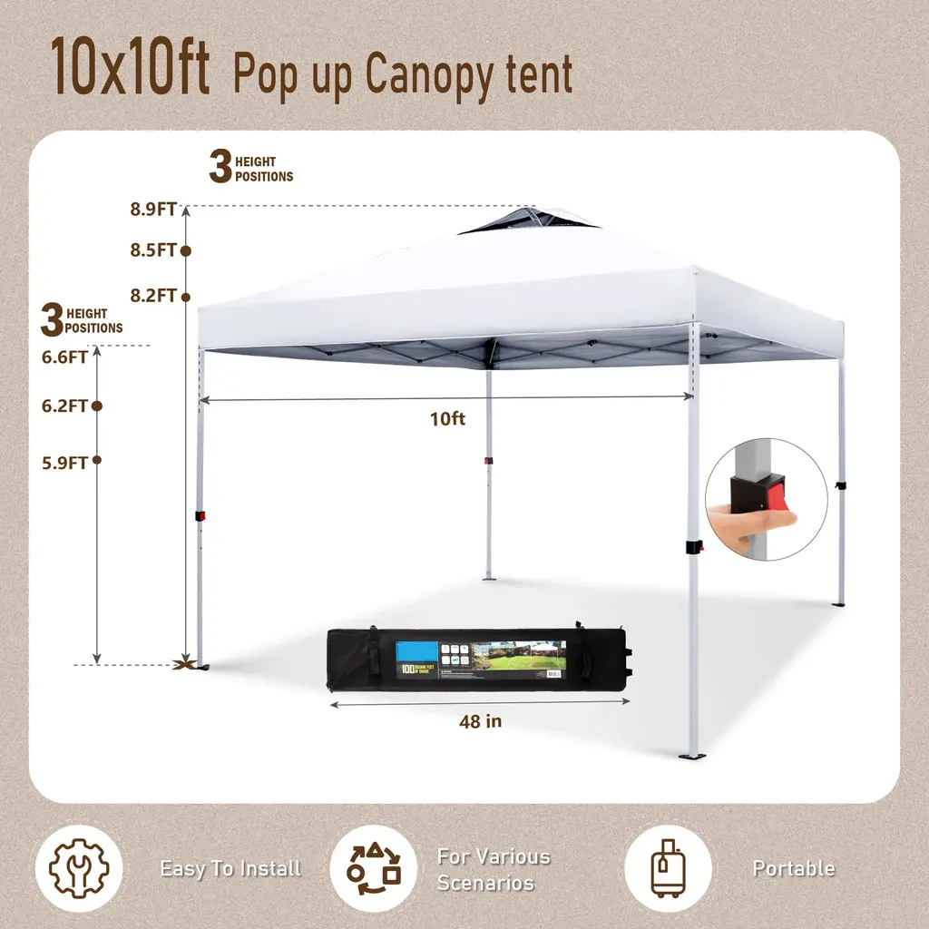 Sophia & William 10'x10' Pop-Up Canopy Tent With 3 Adjustable Height And Roller Bag