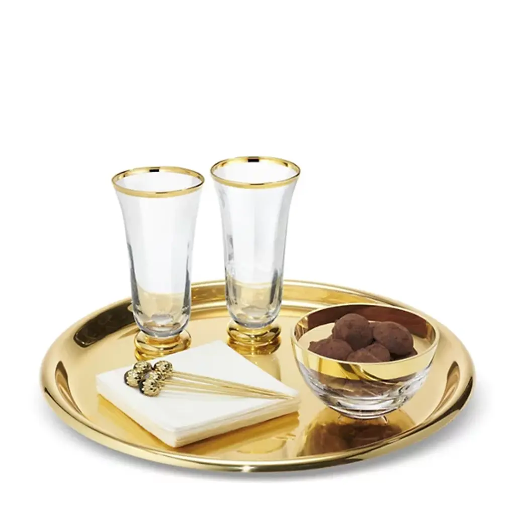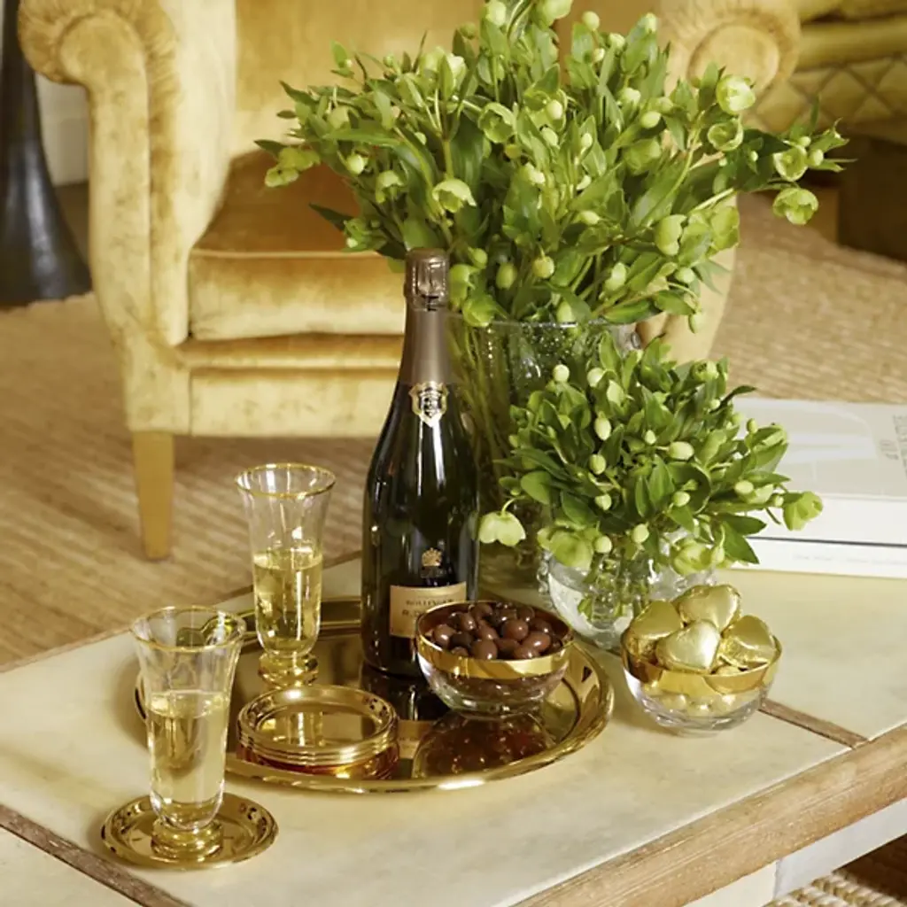 The Sophia Flutes, Set of 2 from AERIN are hand-blown in Italy from lead-free crystal and feature the tall, narrow bowl shape that preserves carbonation in sparkling wines. Each flute includes subtle fluting along the sides that adds texture without interfering with the drink's presentation. The hand-painted detailing at the rim and base creates coordinated accents that complement the other pieces in the Sophia collection. These glasses work perfectly for champagne, prosecco, or sparkling cocktails, while their classic proportions make them suitable for both casual toasts and formal celebrations.