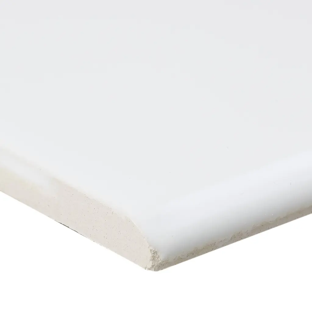 Sophisticated 4X12-Inch Glazed Ceramic Bullnose 12-Inch Side In Matte Arctic White - 4X12 - 4X12 - Matte Arctic White