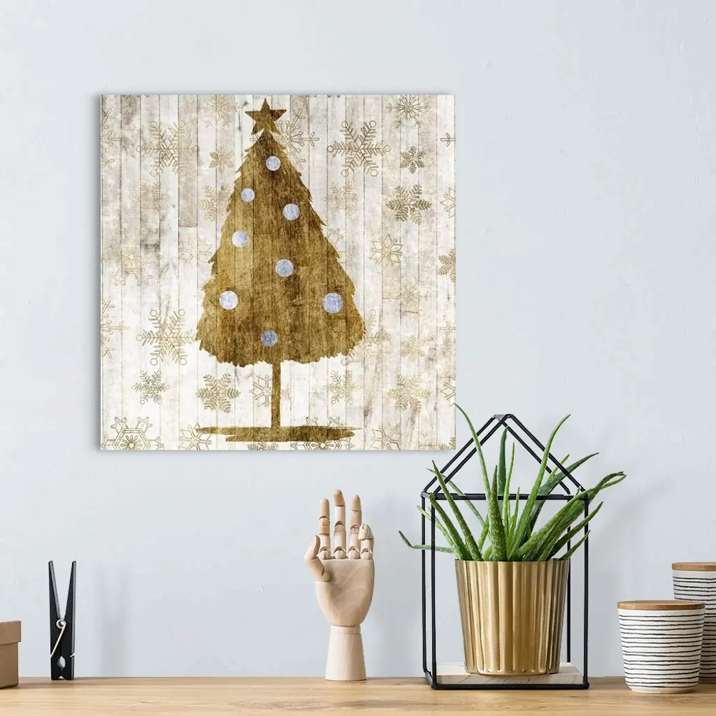 Contemporary Christmas decor of a tree in gold tones.