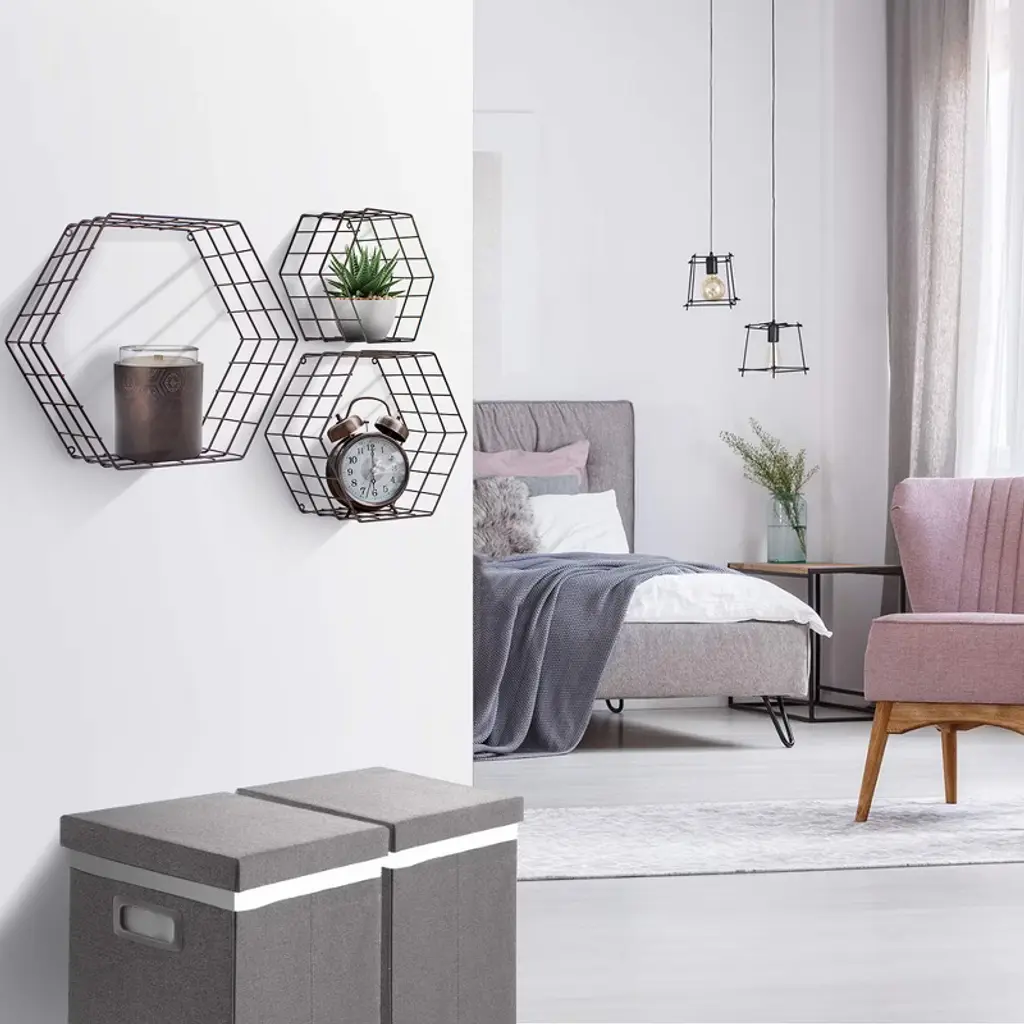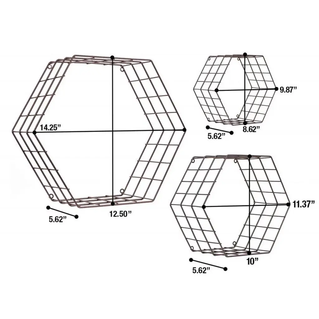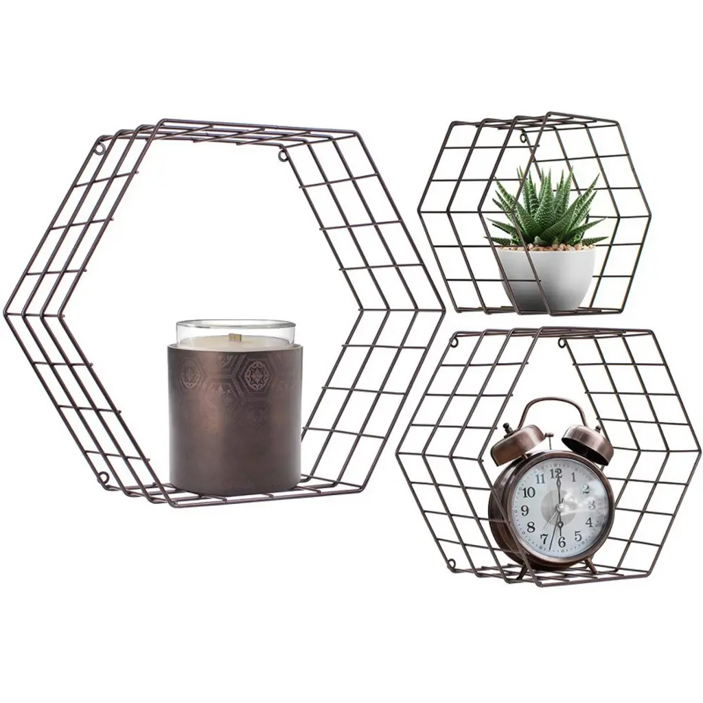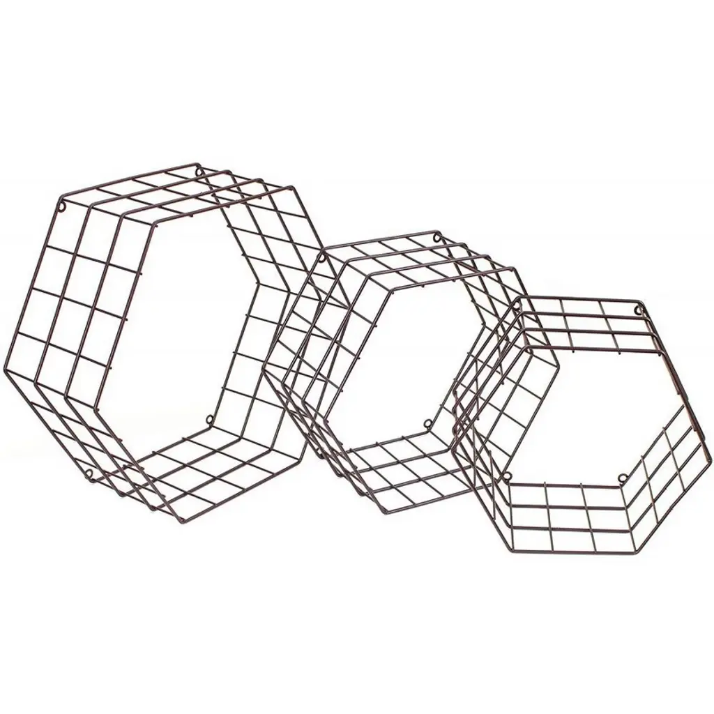 Sorbus Metal Wire Hexagon Design Wall Mounted Floating Shelves, Set Of 3 - Bronze