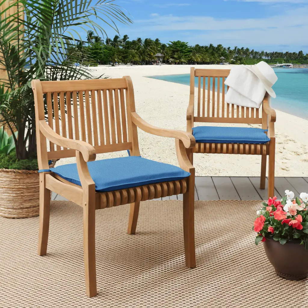 This chair pad set is sure to give your outdoor space a refreshed and friendly look with its beautiful blue and solid textured fabric. Featuring 100% weather-resistant fabric that is built to last, this chair pad set will withstand all of the outdoor elements and brighten your mood at the end of a long day. Made in the USA and filled with recycled polyester, this chair pad set will provide quality comfort for all of your family and friends! Outdura is the trusted brand for performance upholstery fabric for outdoor and indoor use.Outdura fabrics are made from 100% solution-dyed acrylic with color pigments infused to the core of fibers, ensuring colorfastness, UV resistance, and durability. • Ideal for casual indoor and outdoor use• Includes two (2) chair pads• Chair pad cover cannot be removed• Available in a variety of sizes and colors to ensure that you find the perfect match for your furniture• Chair pads only. Furniture not included.• • Made in North America•