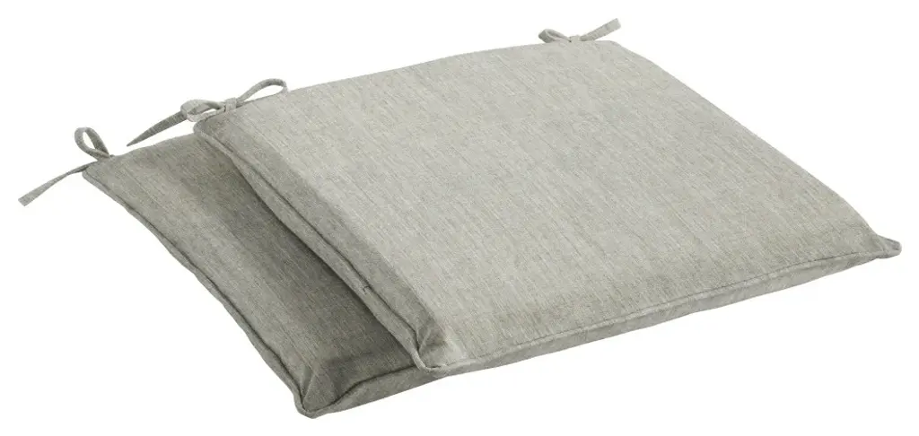 This chair pad set is sure to give your outdoor space a refreshed and friendly look with its beautiful Gray and solid fabric. Featuring 100% weather-resistant fabric that is built to last, this chair pad set will withstand all of the outdoor elements and brighten your mood at the end of a long day. Made in the USA and filled with recycled polyester, this chair pad set will provide quality comfort for all of your family and friends! Sunbrella is founded on the belief that fabrics should be both beautiful and functional. We began in the 1960s with the challenge of creating an awning canvas with a substantially longer lifespan than cotton. Sunbrella has become widely adopted for shade structures, marine canvas and upholstery fabric for both outdoor and indoor applications.Our textiles are made with close attention to design detail, and engineered with robust performance characteristics that provide resistance to fading and degradation from sunlight and chemical exposure. The fabric is tactile yet durable, has industry-leading environmental characteristics, is easy to care for and offers long life wherever it''s used.No Sunbrella manufacturing facility in the world sends waste to landfills. A result of our focus on efficiency, this monumental achievement allows Sunbrella to lead by example, putting sustainability into practice every day across the globe. Our unique coloring process not only makes Sunbrella fabrics fade-resistant, it also conserves more water than conventional dyeing processes. At Sunbrella we believe it''s important to preserve the environment around our facilities. We work to conserve the plant and animal life that is native to the area and encourage our employees to plant gardens designed to provide fresh food and nourish local wildlife.We stand behind our fabrics with a guarantee that''s the best in the industry: a 5-year limited warranty for upholstery. This warranty protects the original purchaser of Sunbrella fabric. This warranty protects against Sunbrella fabric becoming unserviceable due to color or strength loss from normal usage and exposure conditions, including sunlight, mildew and atmospheric chemicals.• Ideal for casual indoor and outdoor use• Includes two (2) chair pads• Chair pad cover cannot be removed• Available in a variety of sizes and colors to ensure that you find the perfect match for your furniture• Chair pads only. Furniture not included.• • Made in North America•