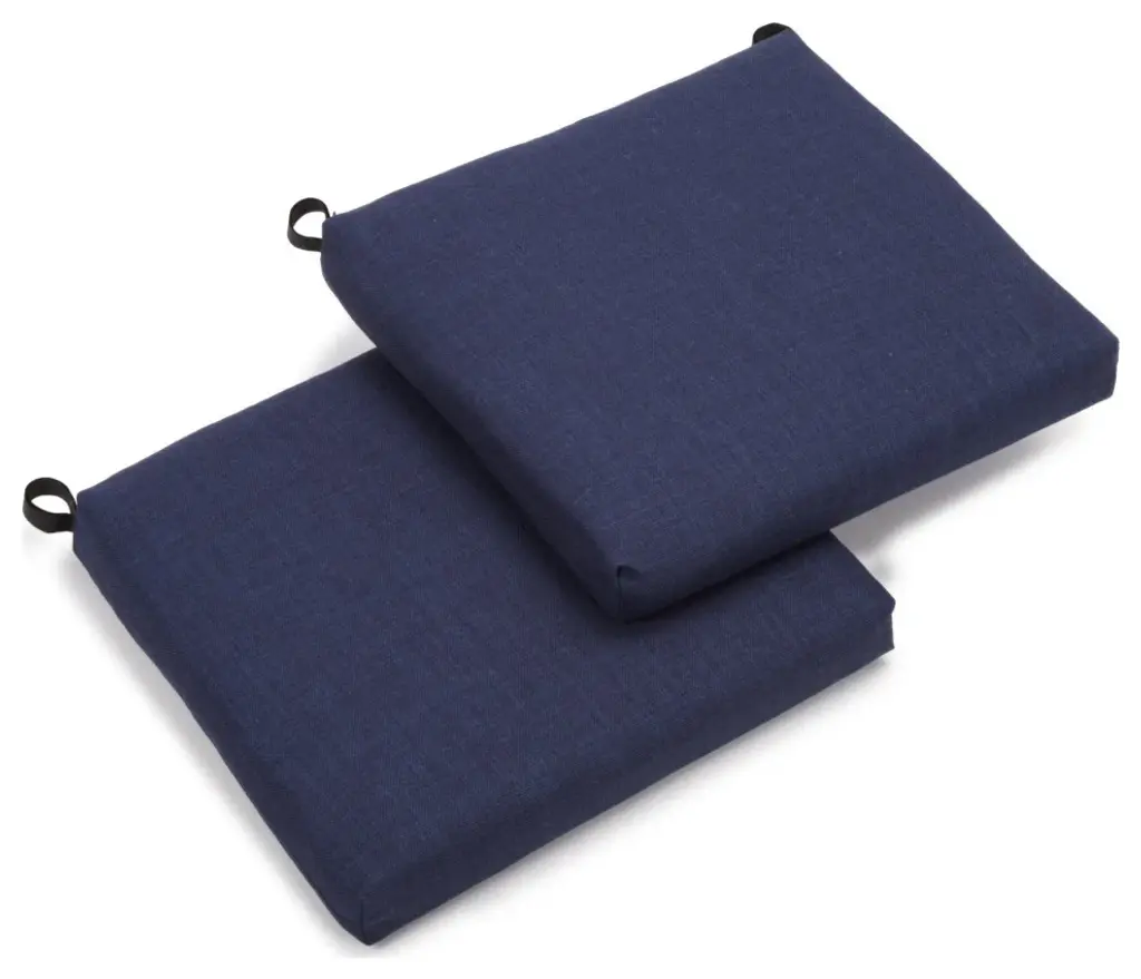 This chair pad set is sure to give your outdoor space a refreshed and friendly look with its beautiful blue and boho fabric. Featuring 100% weather-resistant fabric that is built to last, this chair pad set will withstand all of the outdoor elements and brighten your mood at the end of a long day. Made in the USA and filled with recycled polyester, this chair pad set will provide quality comfort for all of your family and friends! Sunbrella is founded on the belief that fabrics should be both beautiful and functional. We began in the 1960s with the challenge of creating an awning canvas with a substantially longer lifespan than cotton. Sunbrella has become widely adopted for shade structures, marine canvas and upholstery fabric for both outdoor and indoor applications.Our textiles are made with close attention to design detail, and engineered with robust performance characteristics that provide resistance to fading and degradation from sunlight and chemical exposure. The fabric is tactile yet durable, has industry-leading environmental characteristics, is easy to care for and offers long life wherever it''s used.No Sunbrella manufacturing facility in the world sends waste to landfills. A result of our focus on efficiency, this monumental achievement allows Sunbrella to lead by example, putting sustainability into practice every day across the globe. Our unique coloring process not only makes Sunbrella fabrics fade-resistant, it also conserves more water than conventional dyeing processes. At Sunbrella we believe it''s important to preserve the environment around our facilities. We work to conserve the plant and animal life that is native to the area and encourage our employees to plant gardens designed to provide fresh food and nourish local wildlife.We stand behind our fabrics with a guarantee that''s the best in the industry: a 5-year limited warranty for upholstery. This warranty protects the original purchaser of Sunbrella fabric. This warranty protects against Sunbrella fabric becoming unserviceable due to color or strength loss from normal usage and exposure conditions, including sunlight, mildew and atmospheric chemicals.• Ideal for casual indoor and outdoor use• Includes two (2) chair pads• Chair pad cover cannot be removed• Available in a variety of sizes and colors to ensure that you find the perfect match for your furniture• Chair pads only. Furniture not included.• • Made in North America•