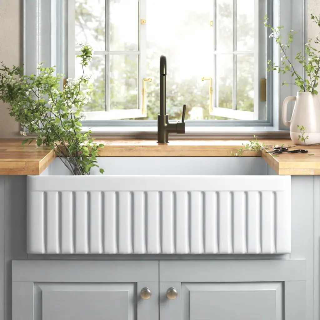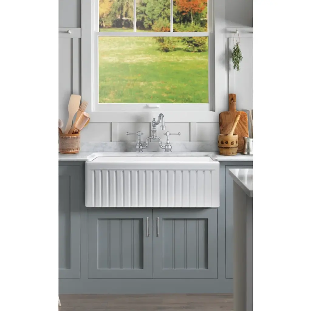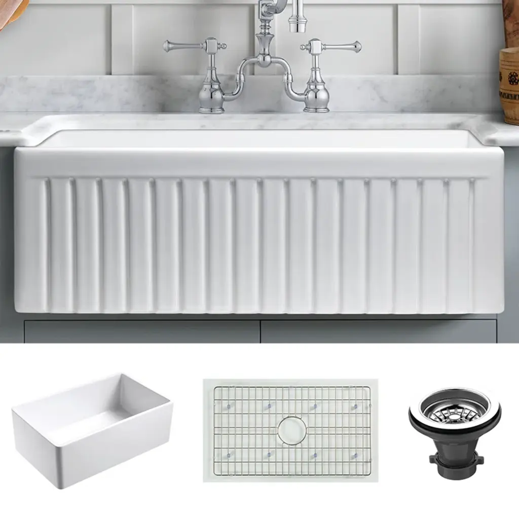 Upgrade your kitchen with this fireclay sink that effortlessly combines style and functionality. This rectangular, single-basin sink features sound-dampening technology for a quieter dishwashing experience. Included with your purchase are a stainless steel sink grid and basket strainer to make your kitchen tasks more efficient. Keep in mind, this sink is designed for residential use, so it's perfect for your home. Plus, it comes with protective bumpers to keep it looking great for years to come. The faucet and soap dispenser are not included.