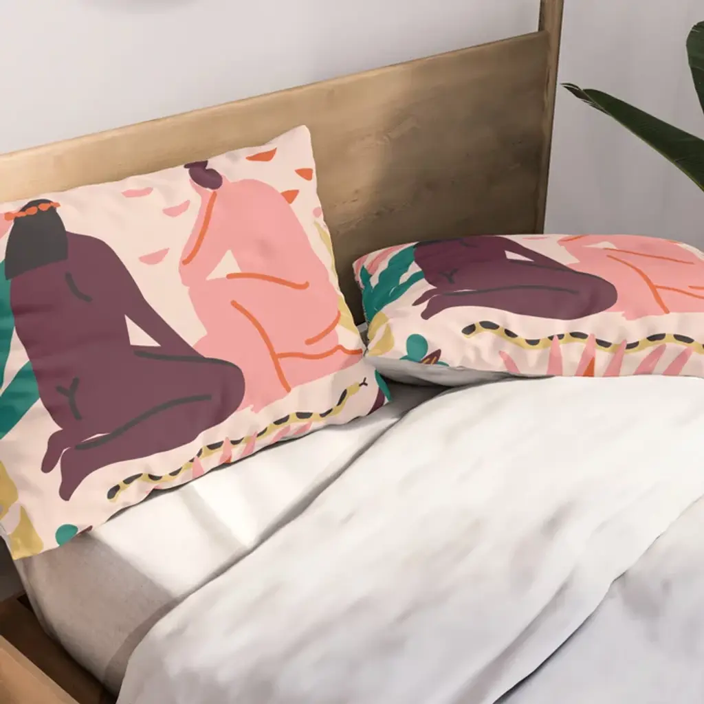 Set of 2 pillow shamsSingle sided design with white on the reversePILLOW SHAM SIZING:Standard = 26" x 20" // 66cm x 51cmKing = 36" x 20" // 91cm x 51cmCrafted with 100% premium microfiber polyester (equivalent to 300 thread count)Envelope closure for snug fitMachine wash cold (no bleach), tumble dry lowWe recommend washing prior to use to increase softness.Color variations between on-site previews and printed fabrics may occur on products with multiple fabric typesSHIPPING: Items are made to order and typically ship within 3-4 business days. Click here for more information about delivery options.RETURNS: Return requests can be made within 30 days of your item(s) delivery. Click here for more information on returns.