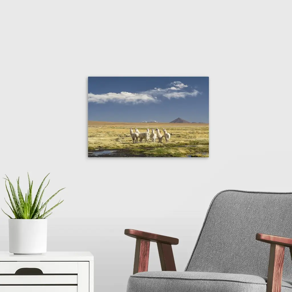 South America, Andes, Altiplano, Bolivia, Llamas On Villamar Mallcu