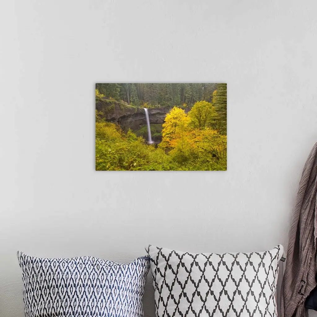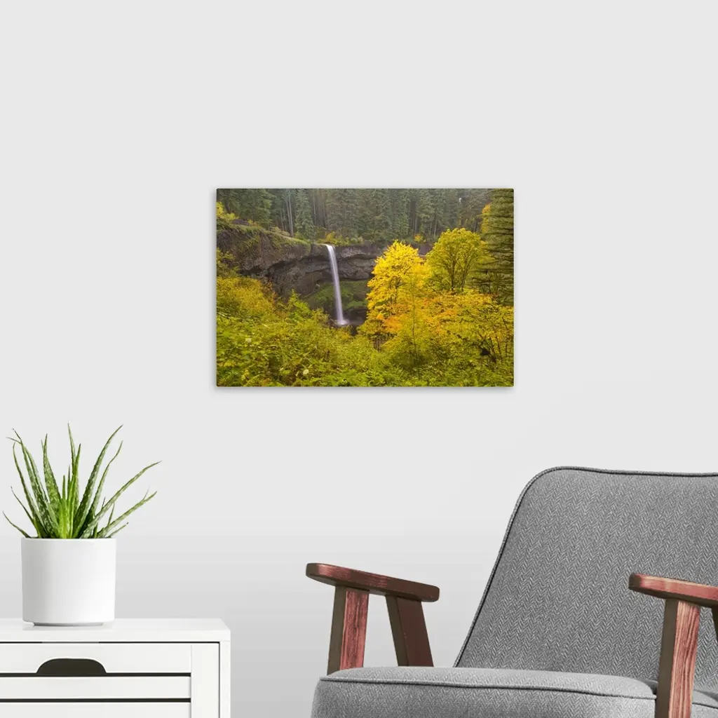 South Silver Falls In The Autumn In Silver Falls State Park, Oregon wall art for home and office decor. Discover canvas art prints, photos, mural, big canvas art and framed wall art in GreatBigCanvas.com's varied collections.