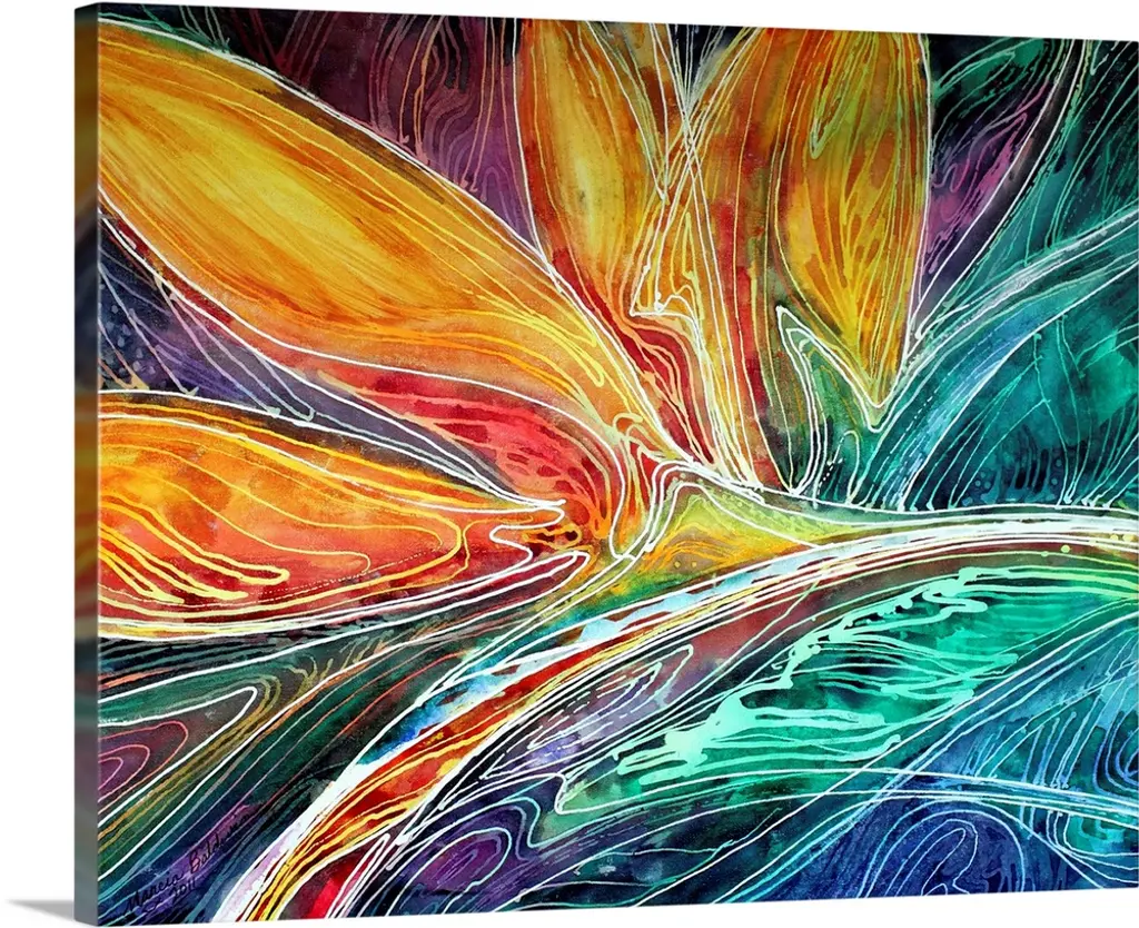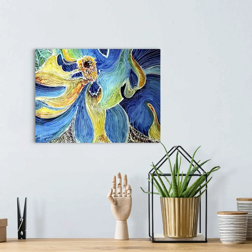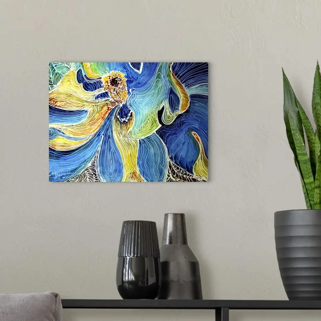 The blossom of the Southern Magnolia created with exciting color and interesting line, using the technique of Batik and watercolor.