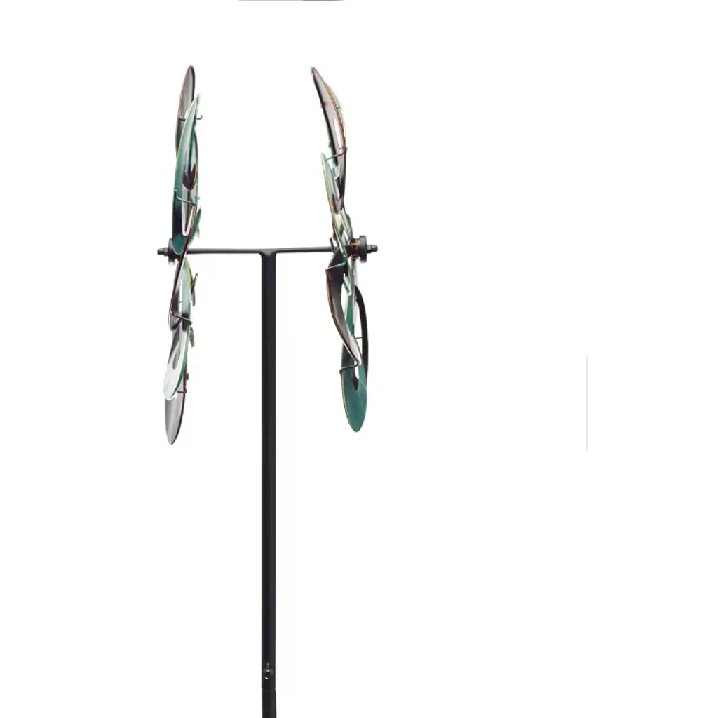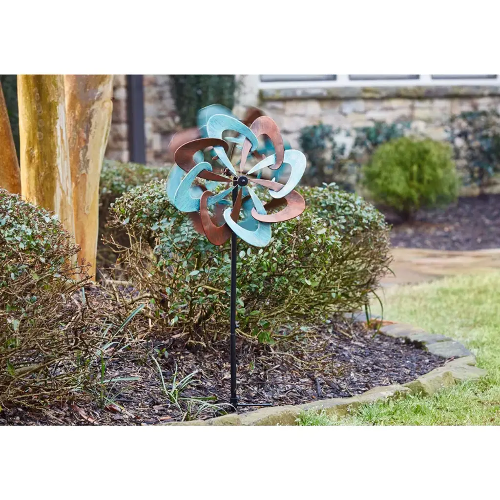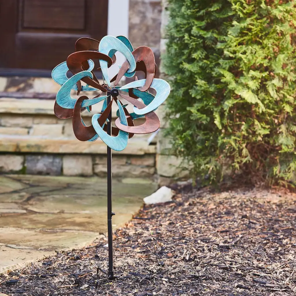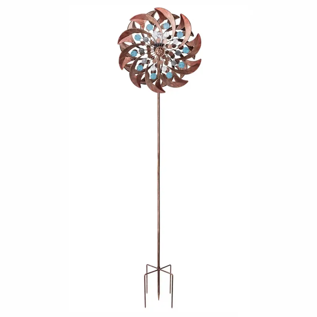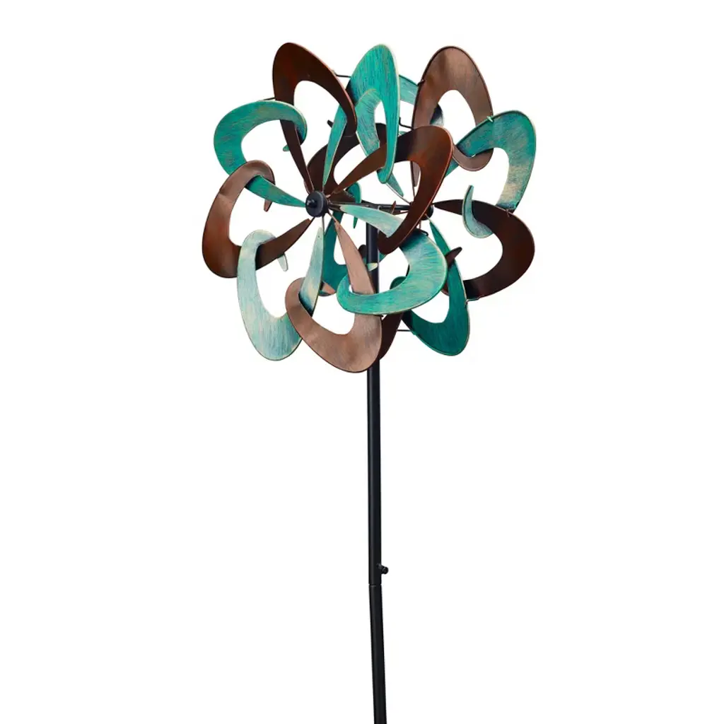 This metal wind spinner stake, featuring a classic pinwheel design, is ideal for year-round outdoor décor. Its elegant metal blades rotate 360° with the wind, providing a dynamic display while withstanding seasonal changes thanks to its durable finish. Whether positioned in your garden or on your lawn, the Pinwheel Wind Spinner adds a vibrant touch to your home as it catches the sunlight. Its dual-action movement brings visual interest to any outdoor space, and the 3-prong ground stake allows for quick and easy installation. Built from sturdy metal with a weather-resistant coating, this spinner is designed to endure both everyday use and the elements.