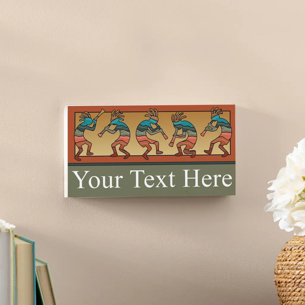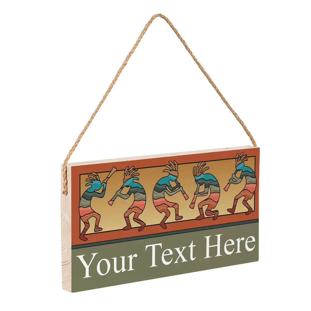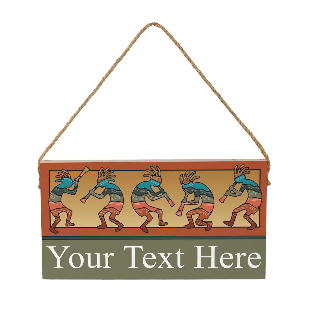 Southwest Sunrise Wood Hanging Sign W/ Rope, Kokopelli With Personalization, 11"x6"