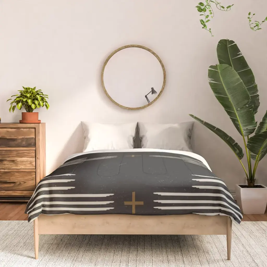 Available in Twin, Twin XL, Full, Queen and King sizesCrafted with 100% premium microfiber polyesterLined with fluffy, lightweight polyfillChannel stitched in a quilted patternSingle sided design with white on reverseMachine washable with cold water on gentleComforter Sizing:Twin - 68" X 88" // 173cm X 224cmTwin XL - 68" X 92" // 173cm X 234cmFull - 79" X 79" // 201cm X 201cmQueen - 88" X 88" // 224cm X 224cmKing - 104" X 88" // 264cm X 224cmSHIPPING: Items are made to order and typically ship within 3-4 business days. Click here for more information about delivery options.RETURNS: Return requests can be made within 30 days of your item(s) delivery. Click here for more information on returns.