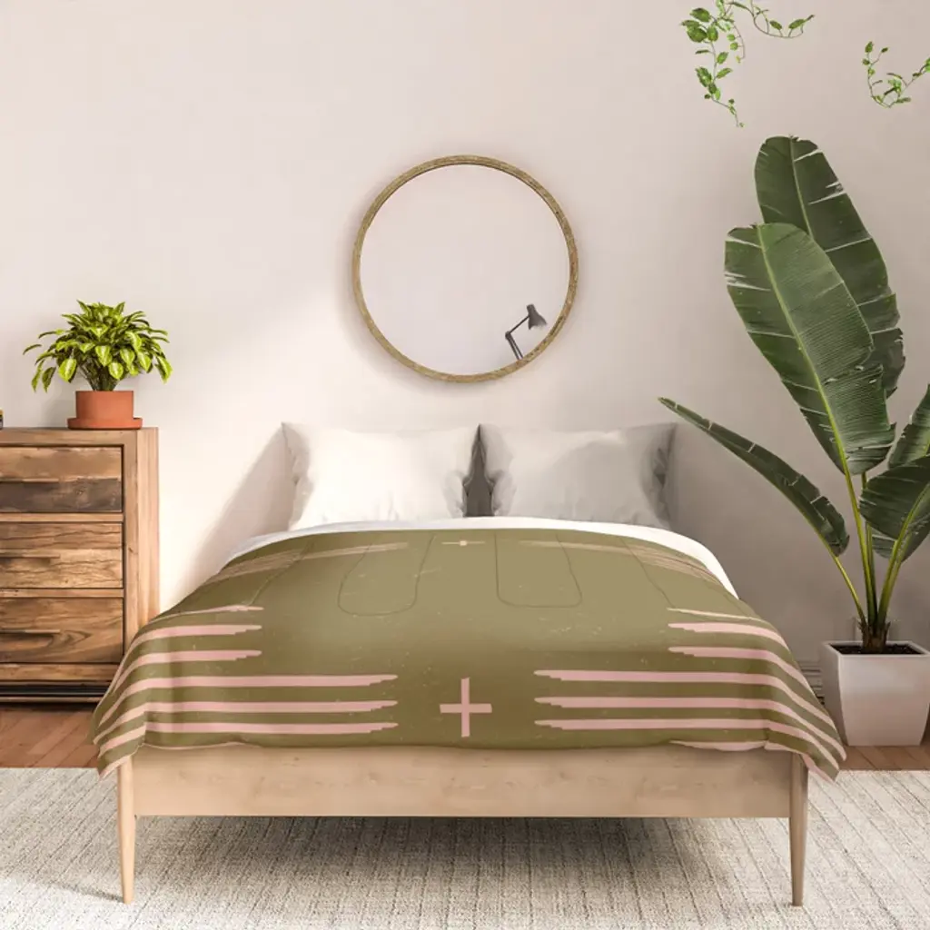 Southwestern Minimalist Retro Green & Pink Comforter