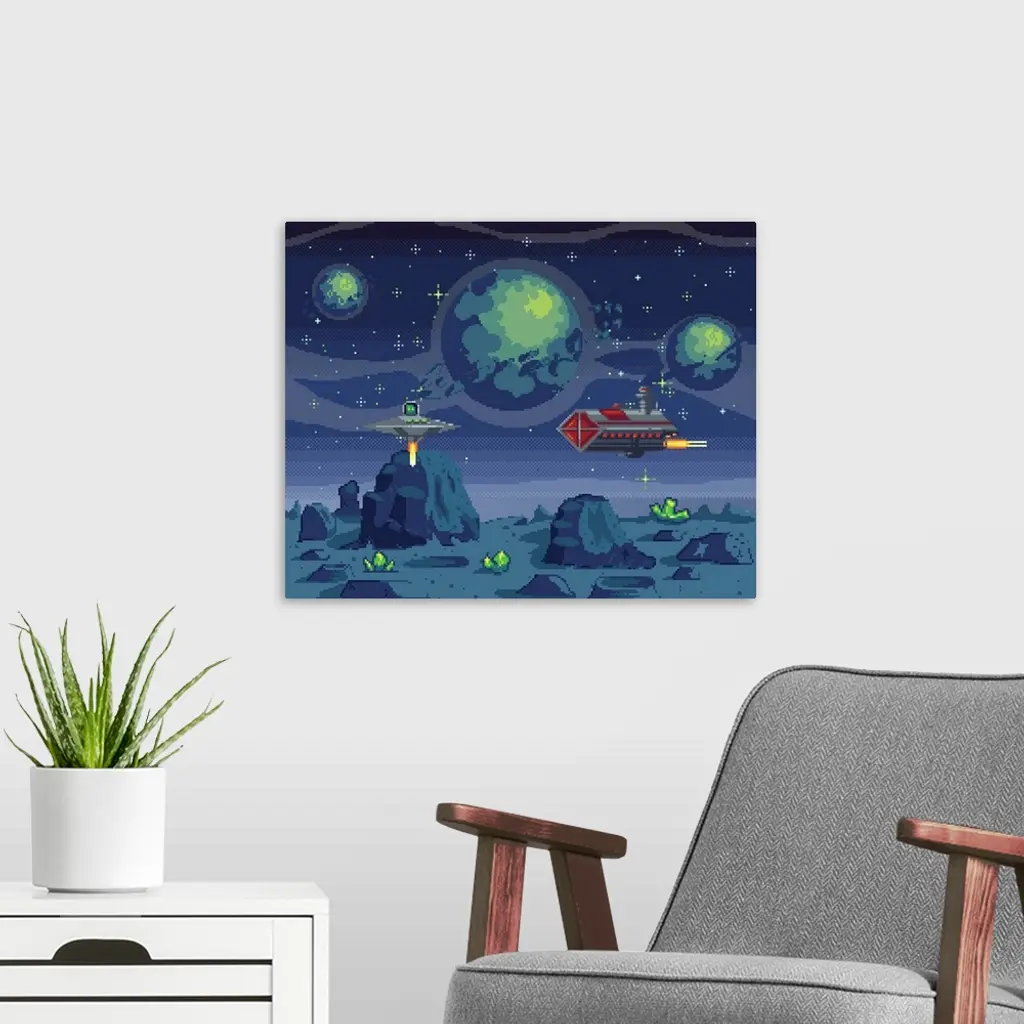 Spaceships During War In Space, Pixel Art wall art for home and office decor. Discover canvas art prints, photos, mural, big canvas art and framed wall art in GreatBigCanvas.com's varied collections.