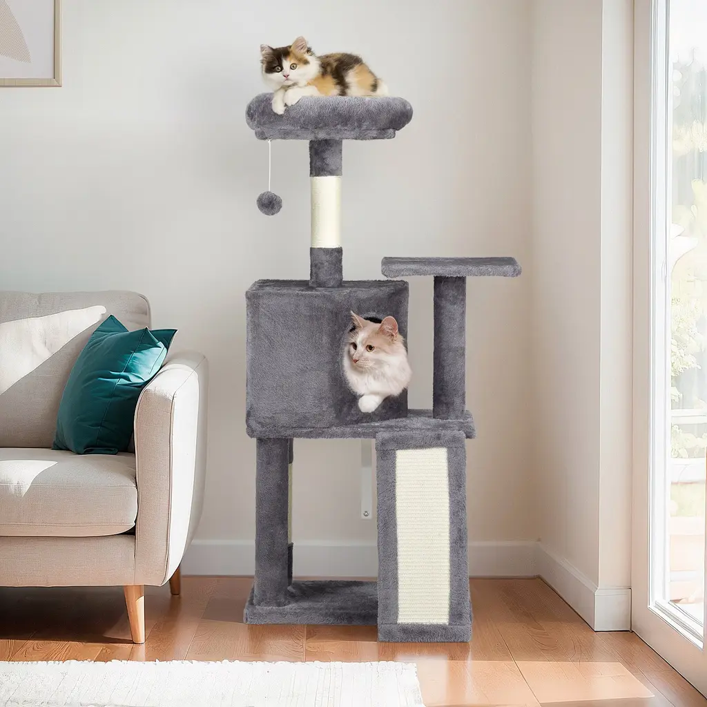 Specification:Description:Transform your indoor space into a feline paradise with our 47-Inch Cat Tree. This spacious cat tower is thoughtfully designed to provide your cats with a comfortable place to play, lounge, and scratch, catering to their natural instincts. Key Features: