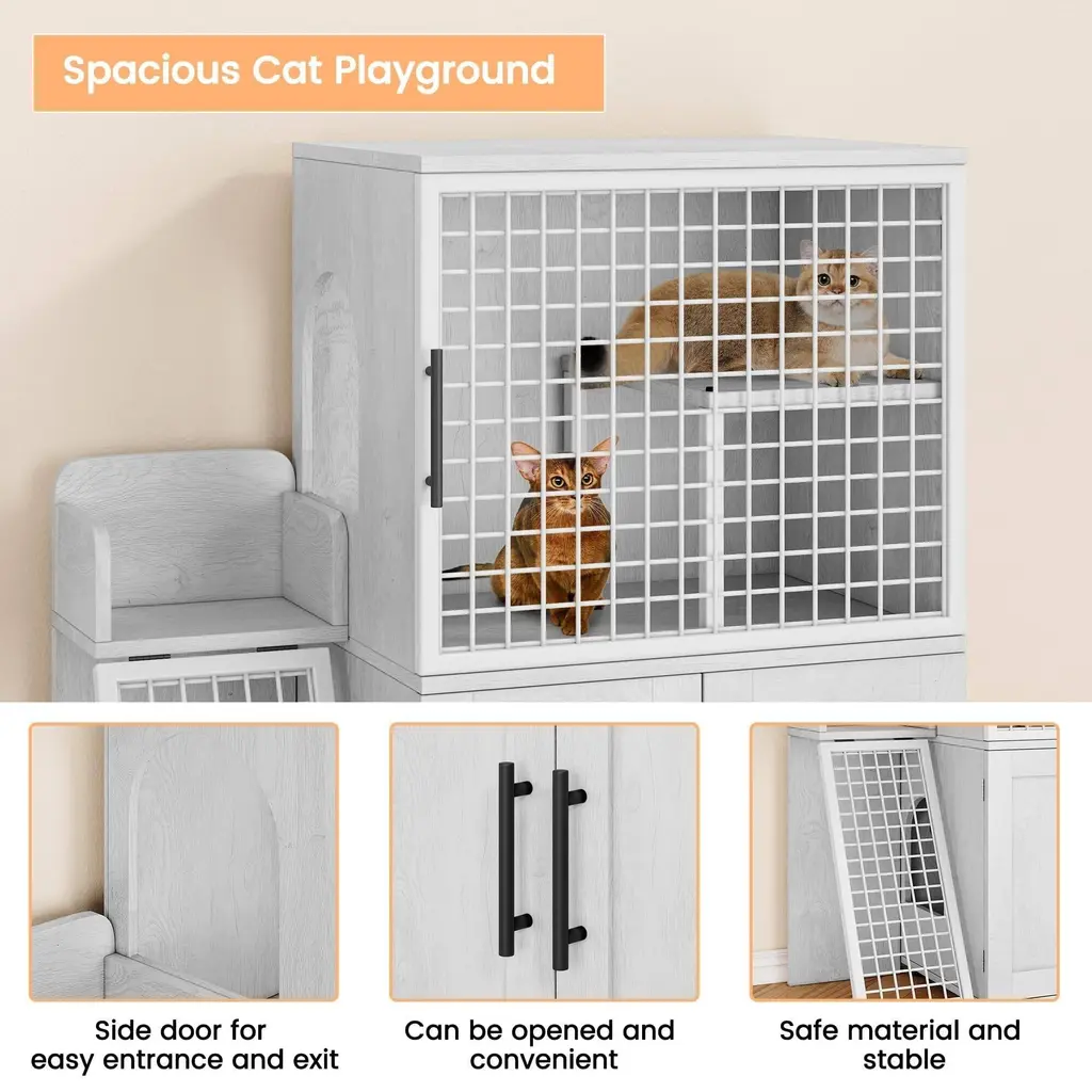 Stylish Cat Litter Box Enclosure: Transform your home with the Cat Litter Box Enclosure, a chic solution that conceals your cat's litter box while offering a cozy resting area. Playful Climbing Paradise: Elevate your cat's playtime with our multi-functional enclosure featuring a built-in ladder and spacious playground. Safety First with Quality Materials: Crafted from high-quality MDF and iron, our cat litter box enclosure prioritizes your pet's safety. Privacy and Comfort Combined: This stylish cabinet not only provides a secure space for your pet but also seamlessly integrates into your home, helping to mask odors and maintain a tidy living area for you and your furry friend. Spacious and Convenient Design: Measuring 33.5 inches in length, this cat litter box cabinet is designed for both functionality and aesthetics. Specifications: Dimensions:29.13"L x 23.62"W x 9.06"H Shape:Rectangular Material: Polyvinyl Chloride (PVC) Weight:57.5LBS