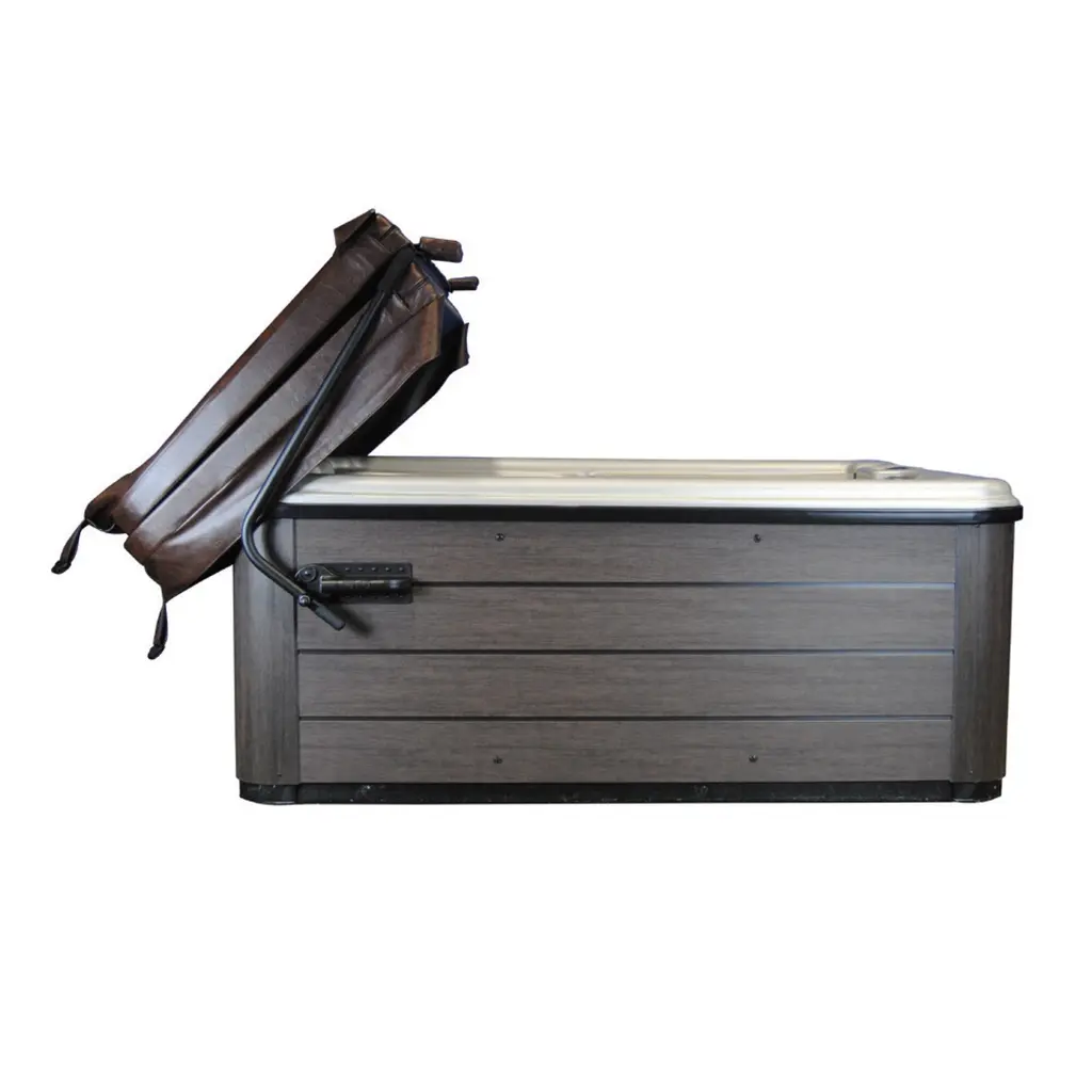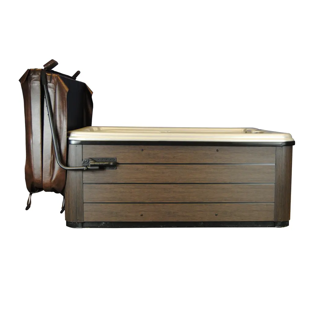 With the SpaEase 100 cover lift, enjoy hassle-free and reliable lifting for your hot tub cover. This powder-coated aluminum tubing lift is the highest quality and most popular on the market. The non-corrosive composite mounting brackets make it easy to install on hot tubs with a corner radius of 10" or less and 96" or smaller. With just 10 to 15 inches of clearance required behind the spa and 5 inches on each side, the SpaEase 100 is a space-saving solution. Please note that drilling and fastening the lift to your hot tub's cabinet structure and additional support may be required depending on the manufacturer. This cover lift cannot be installed on round hot tubs or hot tubs larger than 96" or with a corner radius over 10".Features: