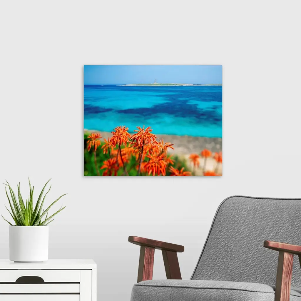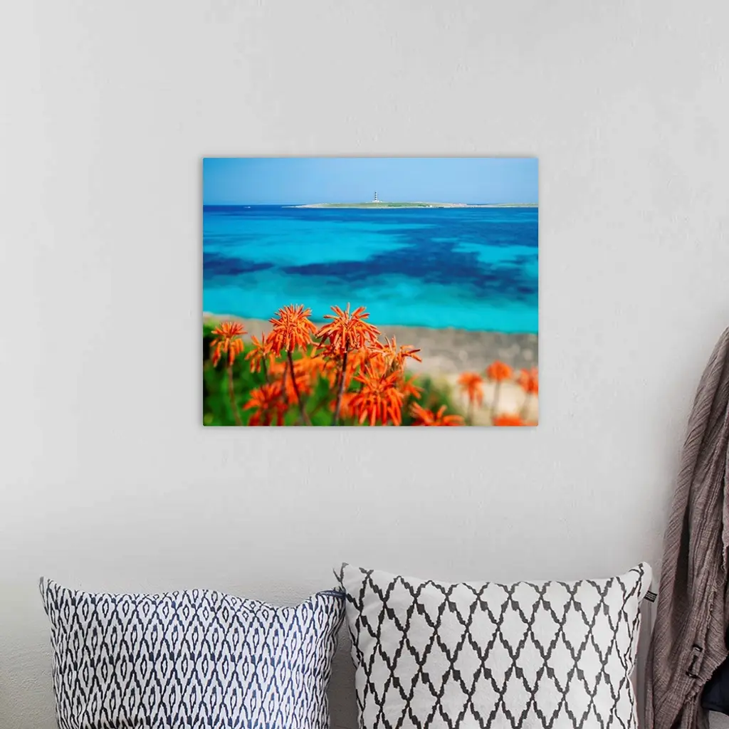 Spain, Balearic Islands, view from Punta Prima beach towards Illa de Laire wall art for home and office decor. Discover canvas art prints, photos, mural, big canvas art and framed wall art in GreatBigCanvas.com's varied collections.