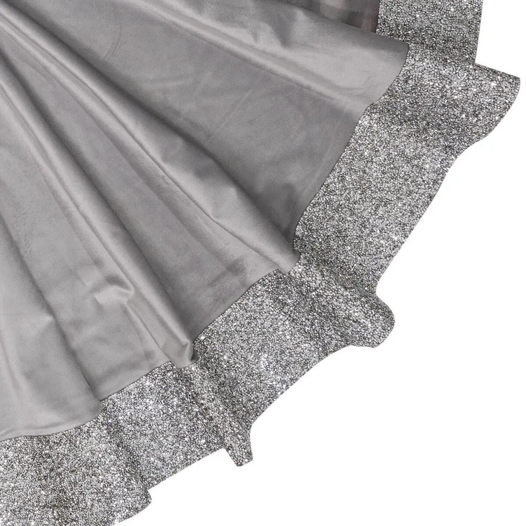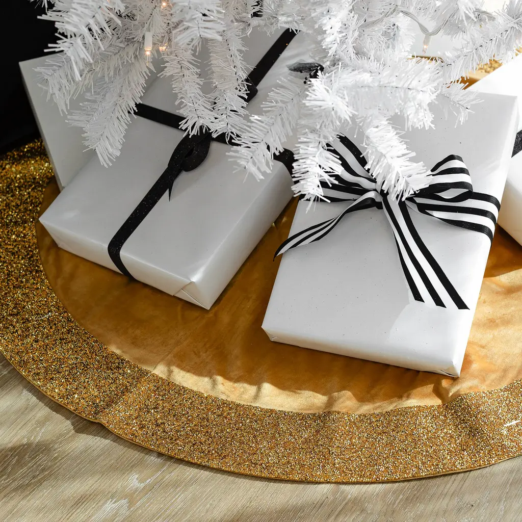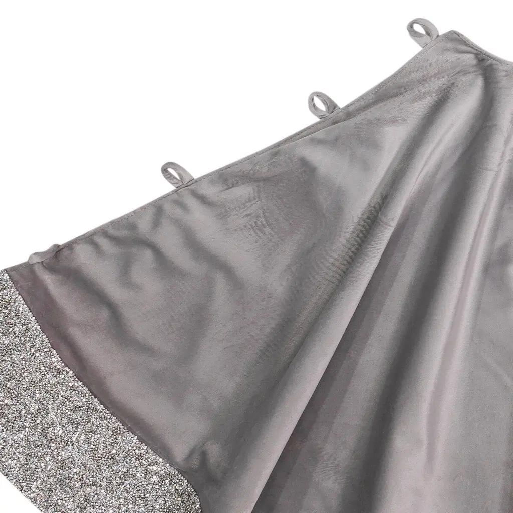A crowd favorite, our Luminous Tree Skirt is a radiant addition to your Holiday decor. Available in five festive colors and crafted from our signature Luminous material with coordinating velvet, this tree skirt elegantly spreads beneath your Christmas tree.With meticulous craftsmanship and attention to detail, the Luminous Tree Skirt features thousands of resin rhinestones on a Luminous material border, creating a magical display.A classic button closure provides easy fastening and a sophisticated finish. Measuring 48" x 48", the Luminous Tree Skirt will accommodate most Christmas tree sizes, providing a generous and stylish drape.Coordinate your Luminous Tree Skirt with our matching Luminous Christmas stockings to enhance your home's Holiday charm.