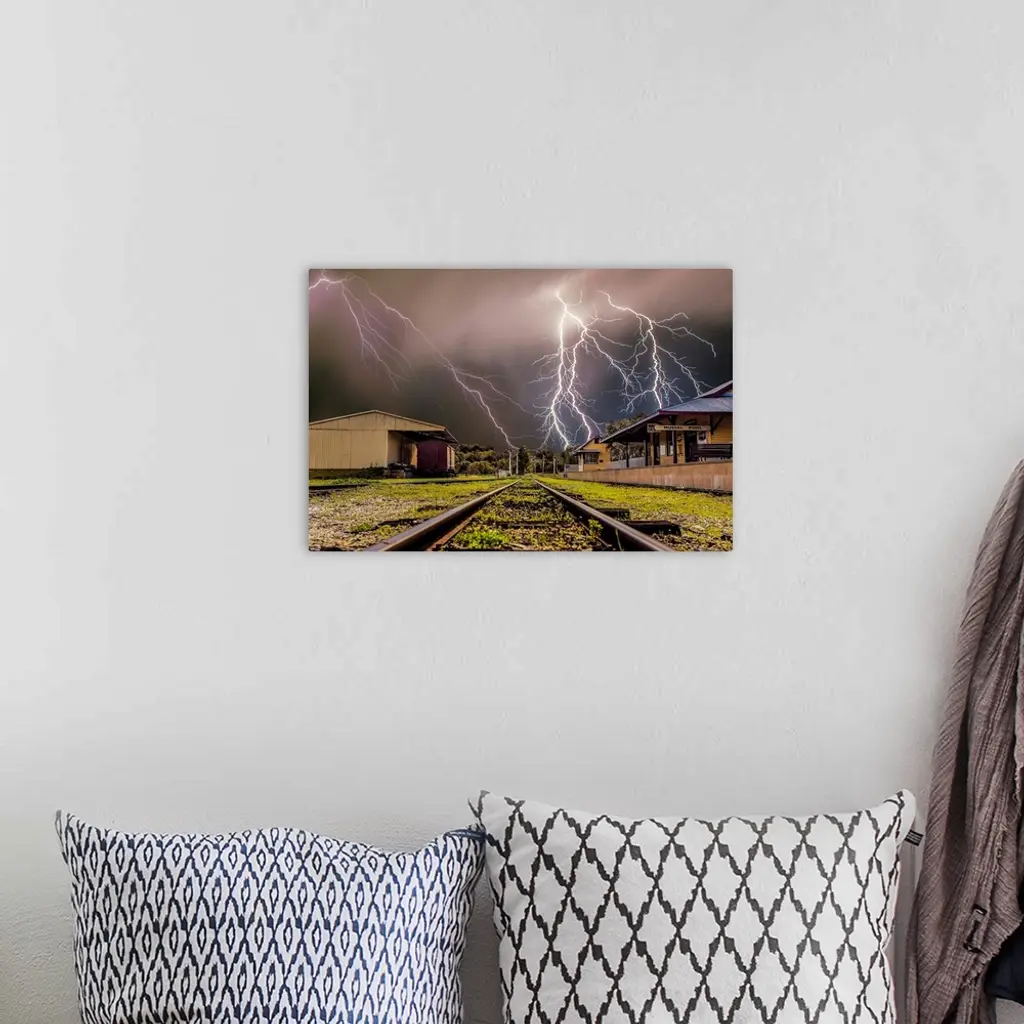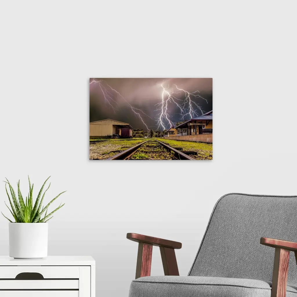 Lightning over Whiteman Park Train station, Perth, Western Australia.