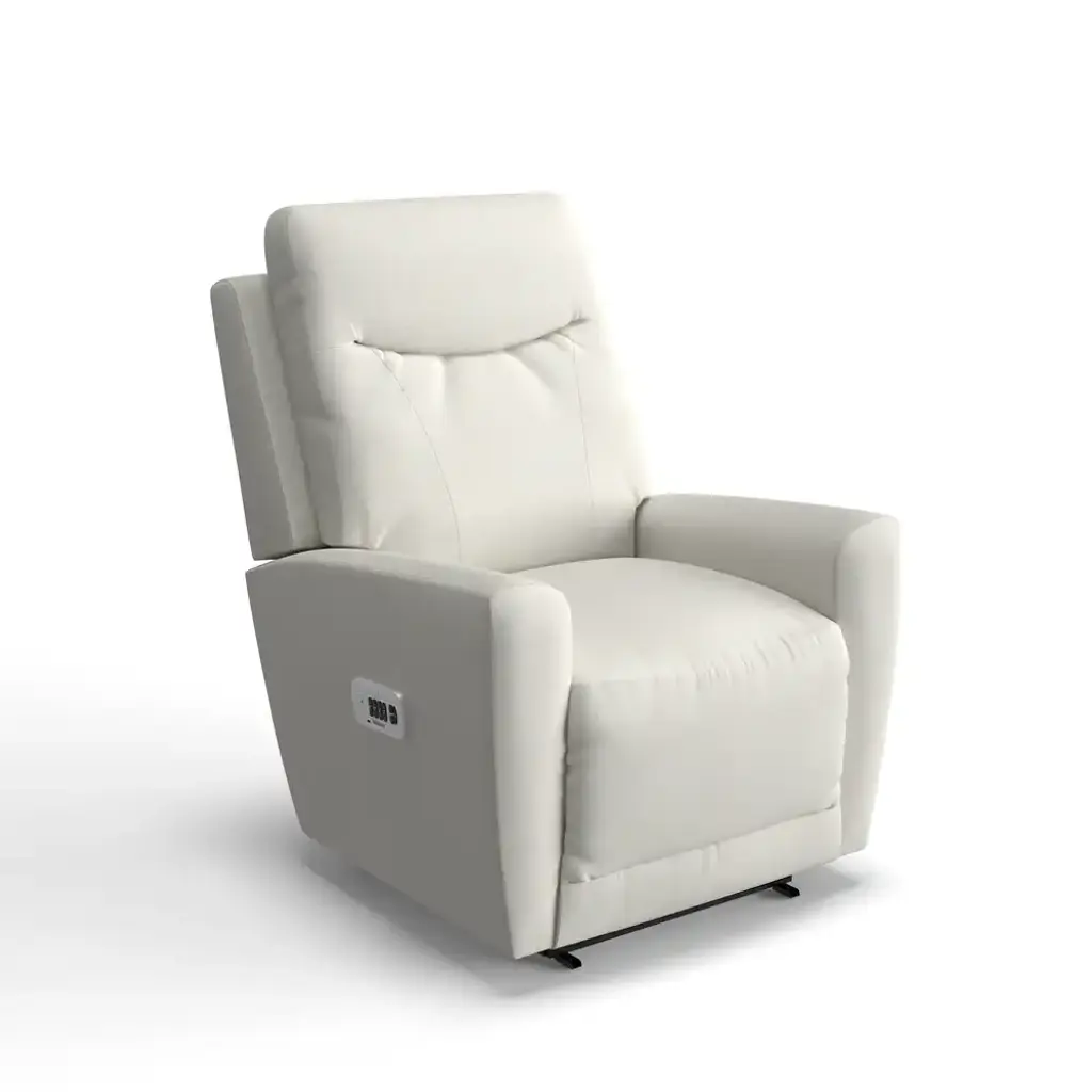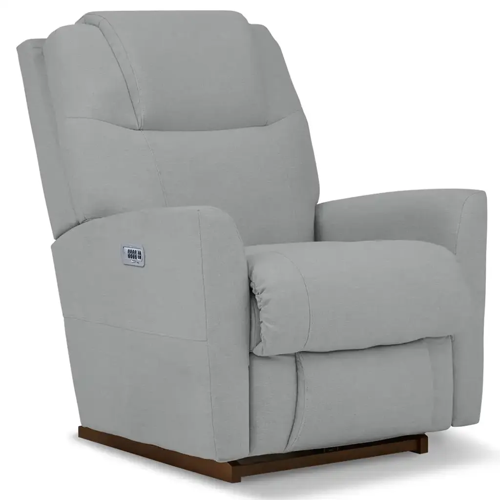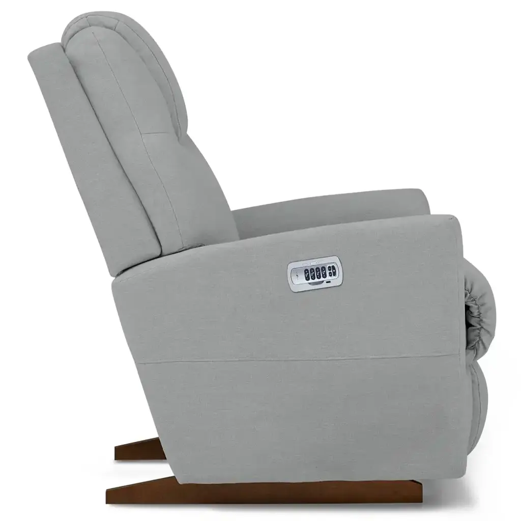 The Sparrow Power Rocking Recliner with Headrest and Lumbar has a scaled-down profile with unique tailoring and tapered arms to amp up style. Power controls adjust headrest and lumbar for cozy support in the plush chaise seat. Or just rock and relax!