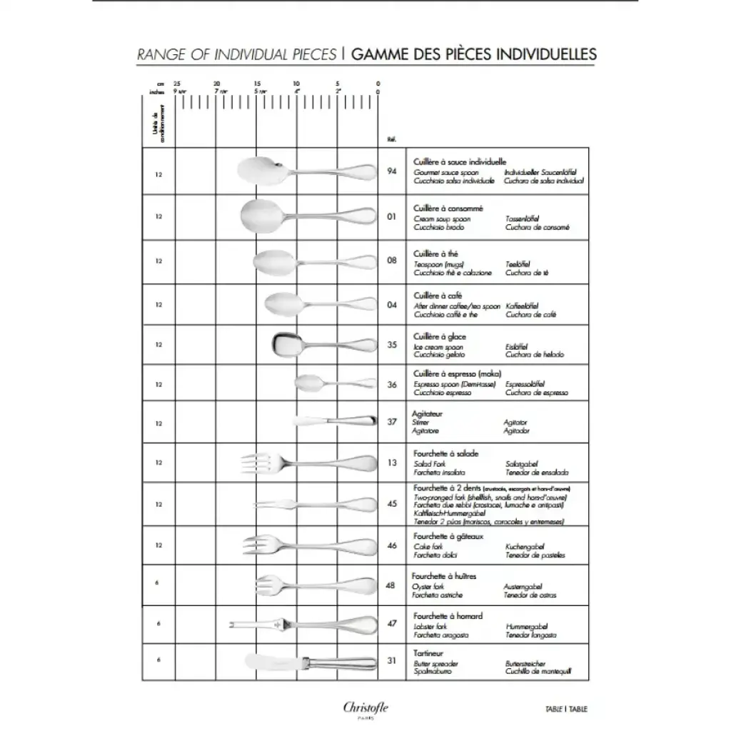 The silver plated cake fork in the Spatours pattern has a wide edge designed especially for cutting cake and pie on the plate. Reflective of its 19th century roots, the Spatours collection, which was available in the first Christofle catalogue in 1862, features generous curves, decorative heels and a slender rounded ridge common in Louis XV style. Launched in 1862, the slender ridge & curve were common decorative elements in the Louis XV style of the eighteenth & nineteenth centuries. Thanks to its creations in silver, Christofle is a symbol of luxury and elegance. Since its founding in the mid-19th century, it has been a continous innovative force and has infused each era with a new art of living. Thus, over time, this prestigious company has revolutionized styles, techniques, and methods for the production and distribution of silver plate and the decorative arts. A player in and privileged witness to the evolution of taste, customs, and traditions, Christofle has always seen its name associated with major creative trends, renowned artists such as Man Ray or Jean Cocteau, avant-garde architects such as Gio Ponti, and modernist silversmiths such as Lino Sabattini and Christian Fjerdingsatd, as well as present-day designers such as Andrée Putman, Martin Szekely or Ora ïto. Today, as in the past, whether gracing the tables of emperors, princes, or maharajas, in palaces, on board the Trans-Siberian Railway, Orient Express, or transatlantic ocean liners, or in the contemporary restaurants, Christofle continues to make an impression.