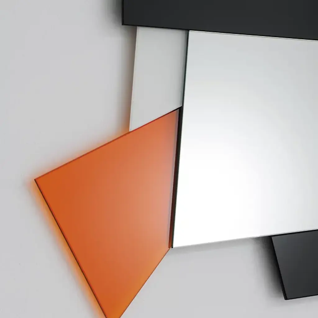 Add lasting abstract character to indoor walls with the angular and entrancing lines of the Specchio di Dioniso 4 from Glas Italia. A carefully calculated creation designed by Ettore Sottsass, it won the Wall Paper Design award and starts by setting laminated crystal accents around an offset, angled reflector. The layered design contrasts warm and cool colors, drawing the view inward towards the reflector, contrasting laminated and lacquered elements with the streamlined mirror.