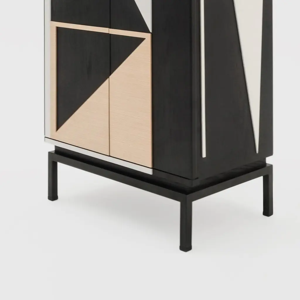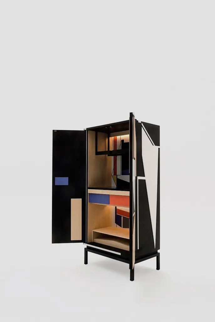 Special edition Petit Comité bar by Renatta Chain.Dimensions: D 85 x W 51 x H 170 cm.Materials: Paglia Diritto veneer, glass, oak wood.Bar made of Paglia Diritto veneer, oak, glass and intervened by Raymundo Semsa.Renatta Chain began her career in Miami, Florida, where she spent two years working on various residential projects. The influence of her grandmother, Charlote Yazbek, a well-known Mexican sculptor, allowed her to acquire a taste for line, color, shapes, and endless elements that helped her decide on the creation of spaces. In 2003 she founded her own design firm, RCH focusing on hospitality and residential projects.BREUER is a company specializing in the design and manufacture of custom furniture and spaces, which began in 1993 in Mexico City under the direction of Arturo Verástegui.Since the beginning of the nineties Arturo Verástegui, founder of the company, began his career in the world of furniture: beginning with the distribution and manufacture of residential furniture and with more than a decade of experience in commercial furniture, BREUER was born with a strong industrial and trade vocation.That is only one part of our history, the other began almost 100 years ago with the architect and designer Marcel Breuer, from whom our name arises. But it is not only the name that we take from Marcel Breuer, but also his modernist ideals and the desire to implement the latest in manufacturing technology is his designs.
