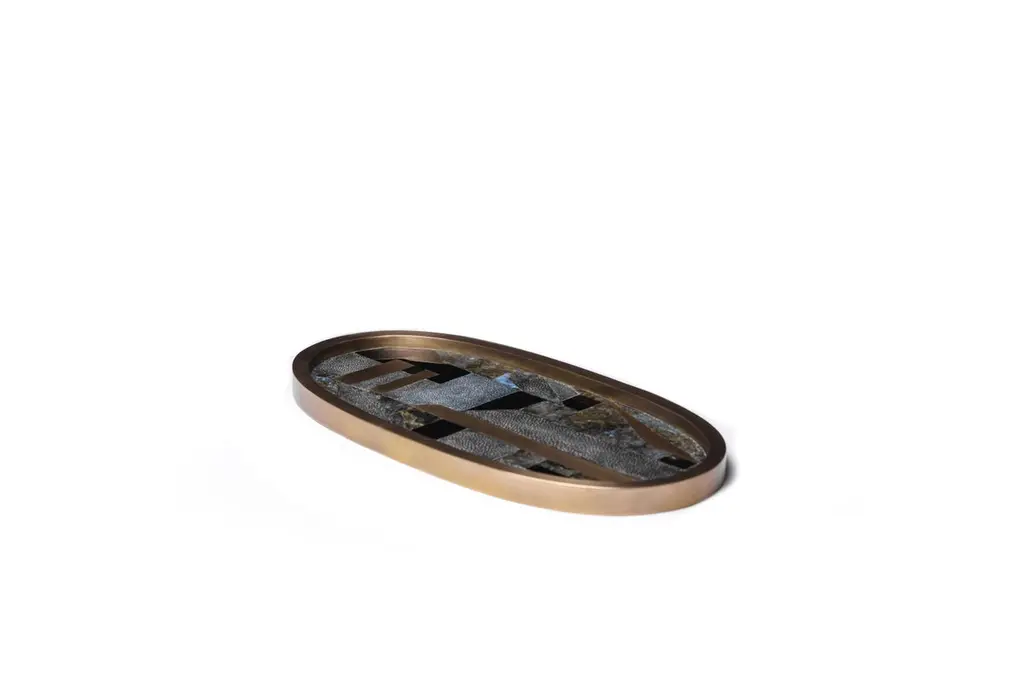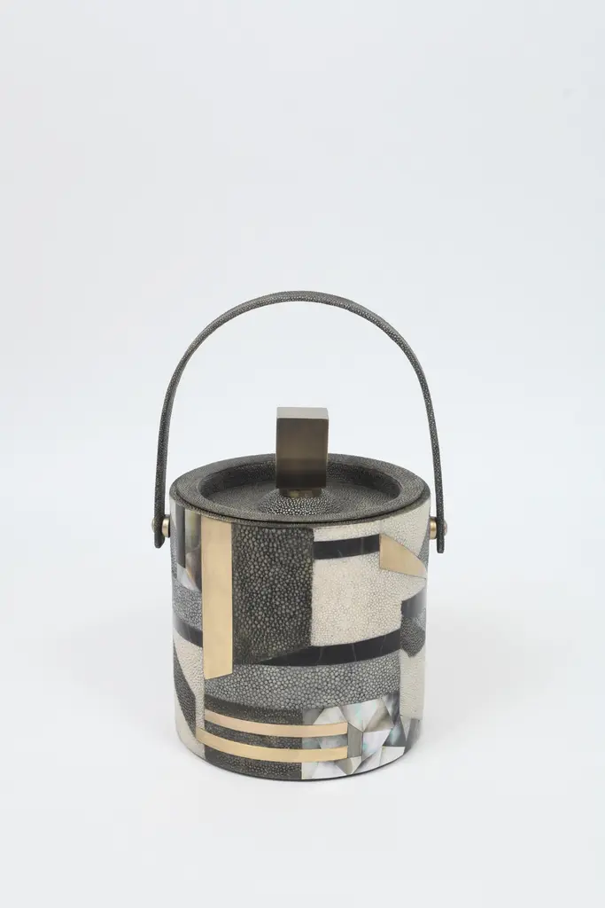 The Paris based label has distinguished themselves since their launch, with their iconic use of shagreen mixed with brass and other exotic materials. All furniture is handcrafted by skilled artisans, ultimately making each piece unique, designed in Paris and produced in the Philippines.The Kifu Paris geometric coaster is the ultimate luxury bar accessory, inlaid in a mixture of shagreen, shell and brass to create a stunning dramatic pop for any tabletop. See images of other Kifu Paris bar accessories to complete your barware collection. Sold as a set of 4, can be purchased in different quantities on request.The dimensions of this piece are approximately 4 x 4"All Kifu Paris pieces are handmade by artisans, ultimately making each piece unique.Custom color/sizing available on request.Wipe clean with soft dry cloth.Although inspired by her parents, her collection of Home Accessories and Furniture is a distinct identity of its own. Kifu uses handmade techniques of elaborate inlay patterns of shagreen, shells, semi-precious stones, materials she experienced as a child growing up in her parent’s studio, but interpreted in a younger quirkier way reflecting her youth. From her "jewelry inspired knobs" on decorative boxes, gold bar boxes and an extravagant inlay pattern mix of shagreen and shell inspired by galactic constellations, as seen on her enormous round mirror, is refreshing to see. Kifu embodies whimsical elements throughout her collection and is not afraid to be daring and unexpected in her approach to design. All shagreen-covered items should be kept out of direct sunlight, color variants may occur on the stingray and other exotic finishes, but this showcases the Parisian label's commitment to creating authentic luxurious products using natural components.