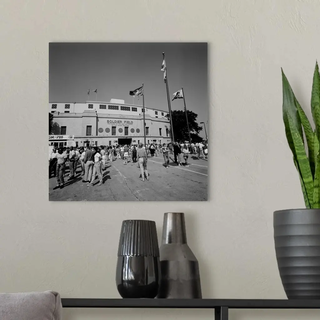 Spectators outside a football stadium, Soldier Field, Lake Shore Drive, Chicago, Illinois, wall art for home and office decor. Discover canvas art prints, photos, mural, big canvas art and framed wall art in GreatBigCanvas.com's varied collections.